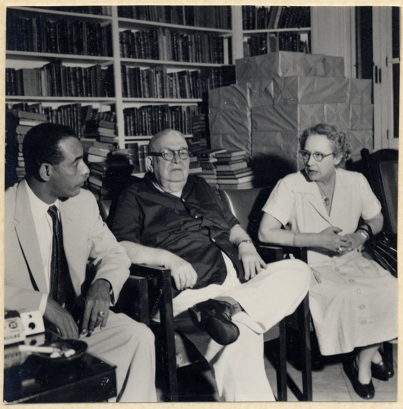 Undated photograph of Lydia Cabrera with an unidentified man, left, and Fernando Ortiz, center