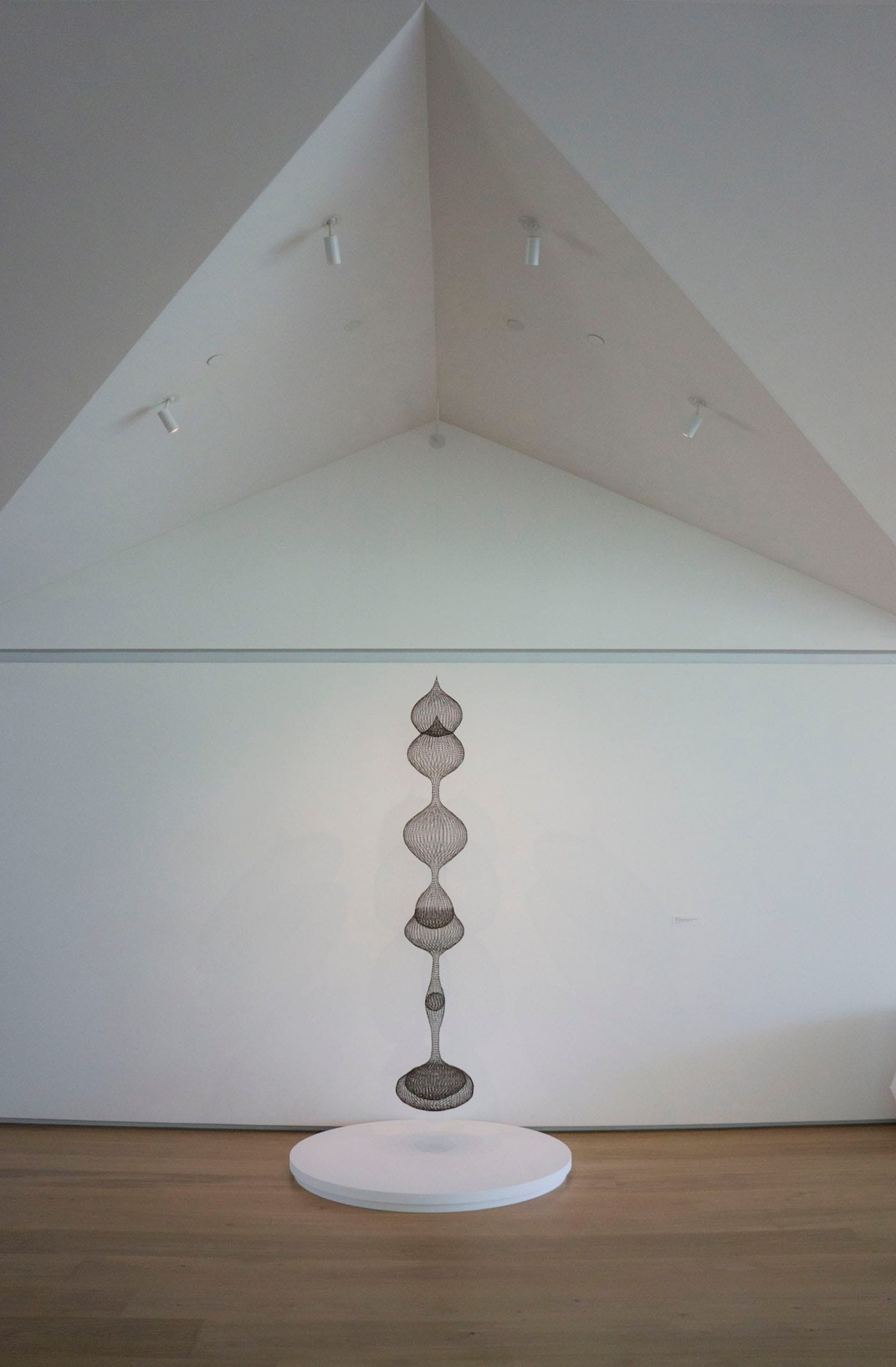 All around the MDI, the slanted roof recalls the high modern architecture of Alvar Aalto or Marcel Breuer — but once inside the main axis of the building, called the “Living Room,” the diagonals meet in a pitched gable roof that pays homage to the gray, post-war bungalows in the neighborhood. It’s a simple touch that gives the MDI the feel of something between a museum and a home; not exactly cozy, but not so big to be sterile, either. Comfortable.