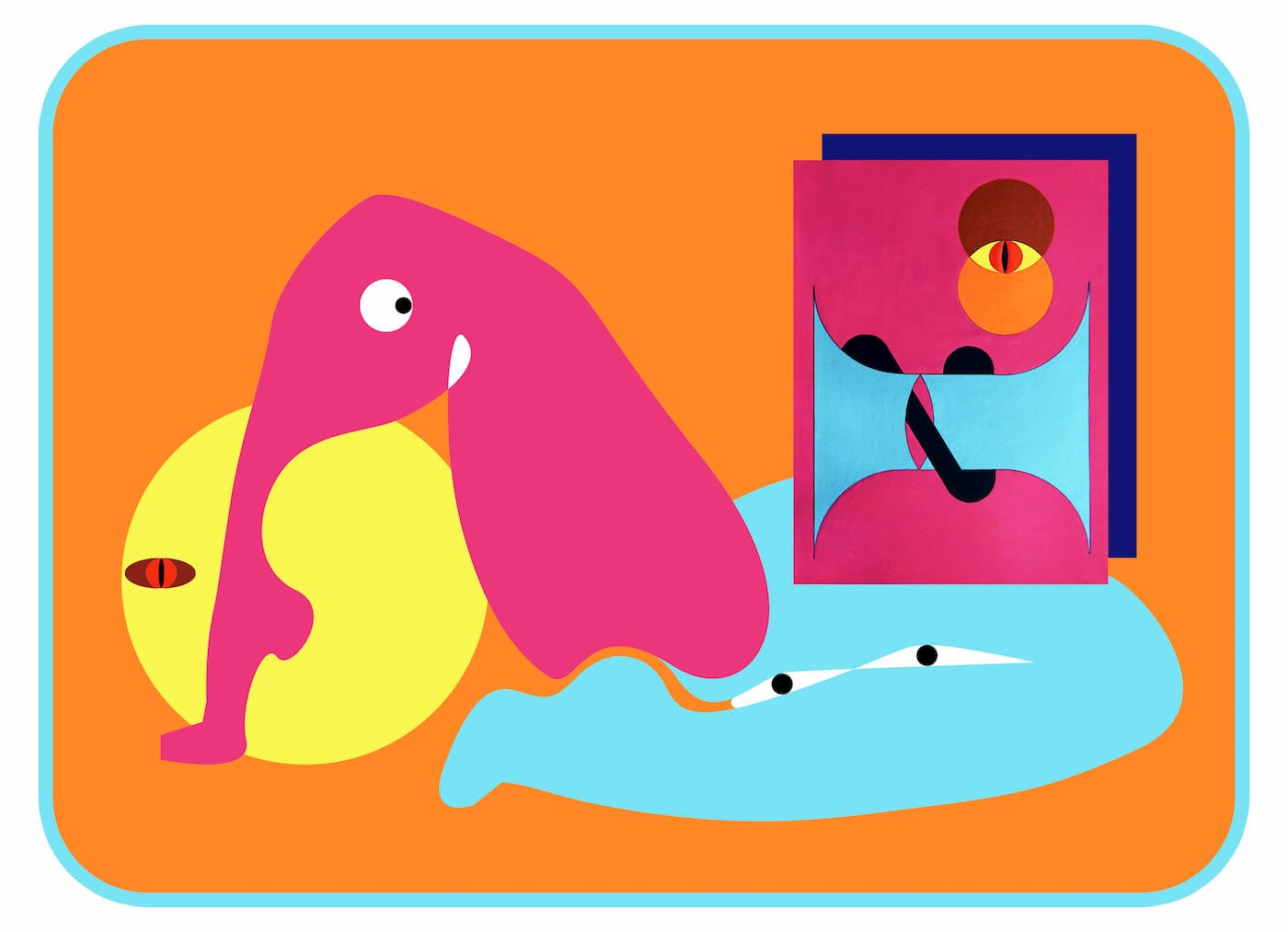 Marie painted a fish with legs as her avatar, since she thinks she was a mermaid in another life. “I don’t work digitally at all,” she said. “I found it interesting to think about what a painting can look like with non-binary and non-gendered subjects.”