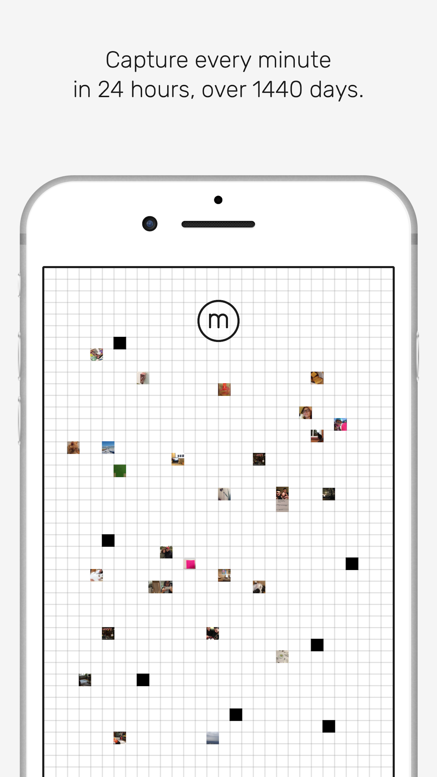 The app’s main screen is a grid of precisely 1,440 squares. Every photo you take becomes a thumbnail, but you can’t open it again — it’s just there, tiny. You can’t look at anyone else’s images, either, except during the minute-span of the alert, right after you snap yours. “There are 1,440 minutes in one day and the alert occurs once a day, so it will take each participant 1,440 days to complete their own cycle,” Adolfsson explains. “Once a participant has completed their 1,440-day cycle, they will be able to download a high-resolution version of all their images — but only their own.” There will also be a limited-edition book, available on a first come-first served basis, “for collectors who want to have a physical version of all their own images taken with the app.”