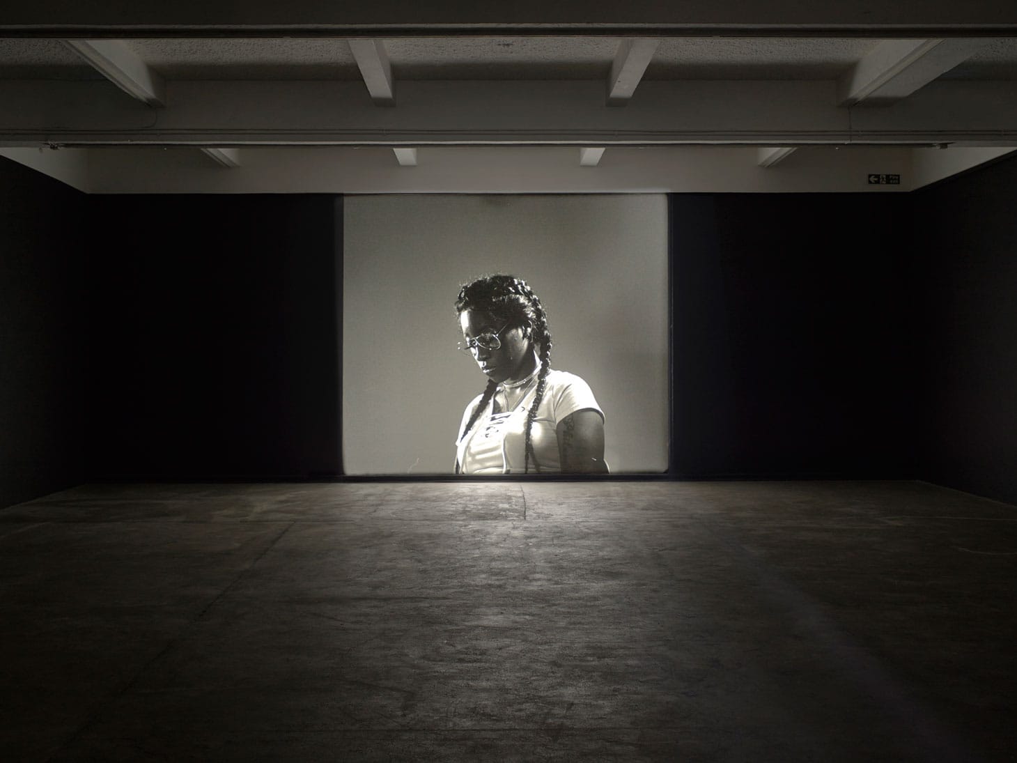 Next up is London-based Luke Willis Thompson, a New Zealand artist of mixed European and Fijian heritage, whose trilogy of short videos are a contemporary take on the traditional genre of portraiture. Two of them adopt the voyeuristic style of Andy Warhol’s screen tests, focusing on Black subjects whose lives have been affected by state and police brutality. “Autoportrait,” for example, depicts Diamond Reynolds, who in July 2016 live-streamed the police killing her boyfriend Philando Castile. The third video, “_Human,” is an elegiac study of the Black British artist Donald Rodney’s sculpture, “My Mother, My Father, My Sister, My Brother.” Rodney’s sculpture is made up of bits of his own skin, accumulated after multiple hospitalizations from the sickle-cell anemia that would claim his life at the age of 36.