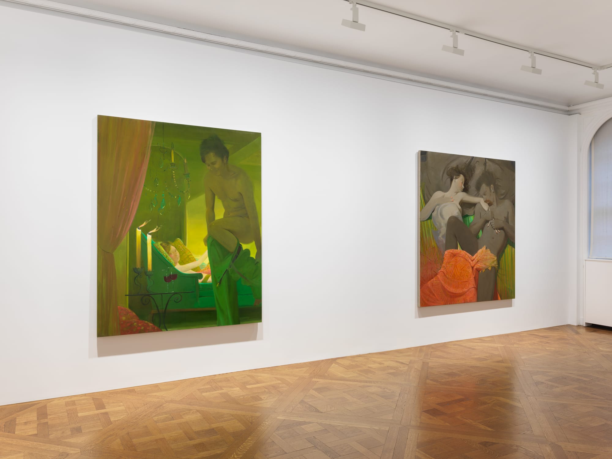 And it feels that Yuskavage has matured as well. While these young, hot, slim bodies, glowing with the breathless blush of new love, can seem annoyingly saccharine, the paintings are much more formally complex and endeavor to portray the feelings of the people as they respond to one another.