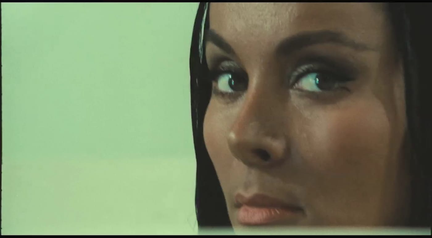 Other Wind shifts, sometimes suddenly, between the film Hannaford is making and scenes of his birthday party. The bizarre film within a film, also called Other Wind, bears a striking resemblance, at moments, to the films of Michelangelo Antonioni, especially Red Desert and his then-recent American production Zabriskie Point. In the scenes that we see, Welles’s muse, the actress Oja Kodar, wanders through barren landscapes, often nude, following or being followed by a shaggy-haired man. While parody, these sections also contain the film’s most visually striking scenes, including a long, psychedelic-colored sequence that begins in a rock club and evolves into an erotic car ride that feels like it’s happening in the middle of a monsoon.