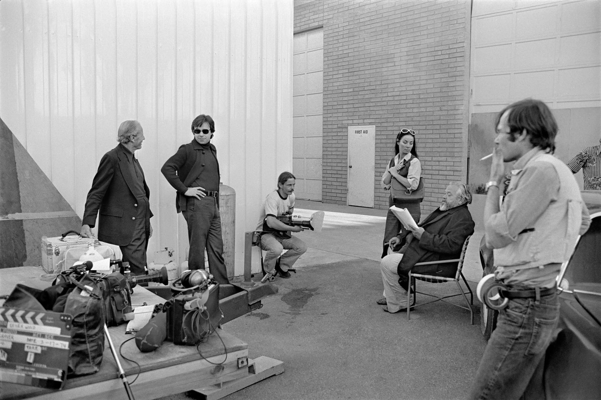 Welles began shooting Other Wind — its abbreviated clapboard title during production — in August 1970, not long after his return to the United States. Its origins date back to a confrontation with Ernest Hemingway over a decade prior. Welles was hired to record the narration, written by Hemingway, for Joris Ivens’s documentary The Spanish Earth. During a preliminary meeting, Welles suggested some changes. The novelist made a homophobic remark, which led to a fist fight. “Oh, Mr. Hemingway, you think because you’re so big and strong and have hair on your chest,” the writer Joseph McBride, in his book What Ever Happened to Orson Welles?, quotes Welles as replying in mock-mochismo defense.