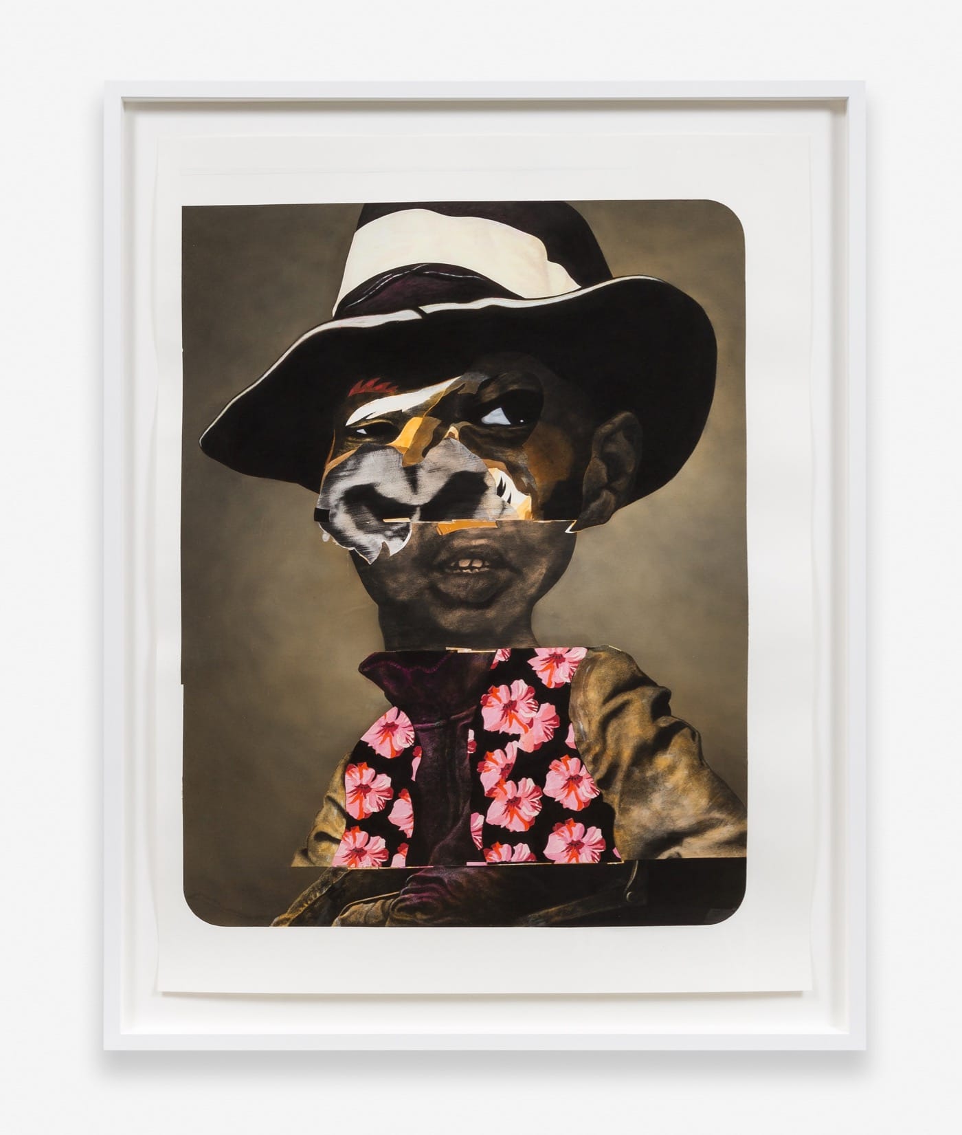 “Charles Re-Visited” (2015), renders his brother in a black-and-white hat with a pink, floral vest. Even as he mixes animal parts with human features, twists the face and abandons symmetry, Quinn still manages to represent character. I feel as if I know Charles with his measured but sassy gaze.
