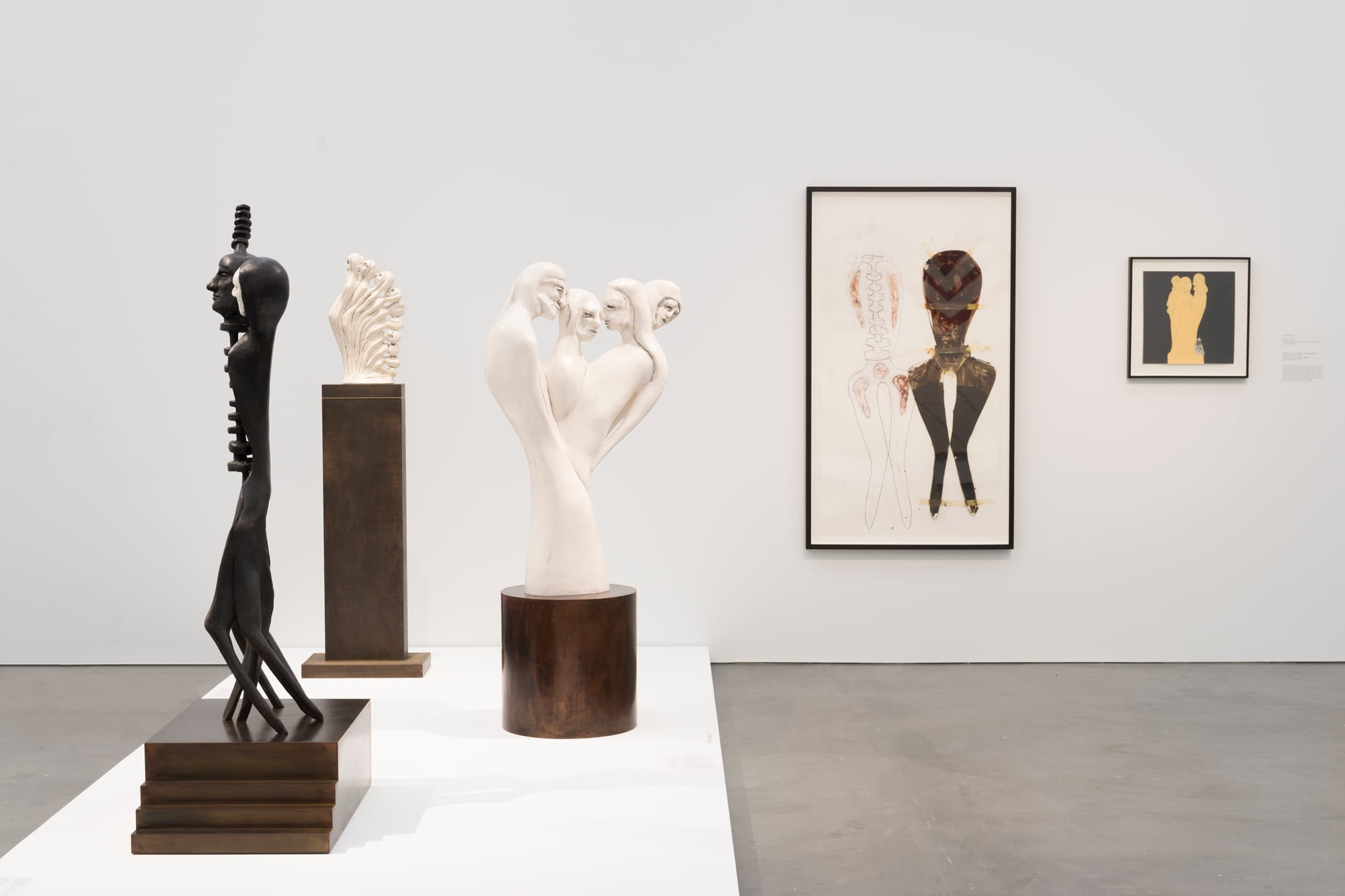 Although David has likened his creative process to, “a spell,” or “blind faith that something will make its own sphere of energy,” he is a formidable craftsman. His commitment to craft encompasses a wide range of media: he is a skilled and sensitive draughtsman; a painter with a fine eye for color; and an excellent textile artist, especially in tapestry. He works in marquetry and his sculpture — often figural at its root, no matter how distorted — shows exemplary technique, especially in Jesmonite.