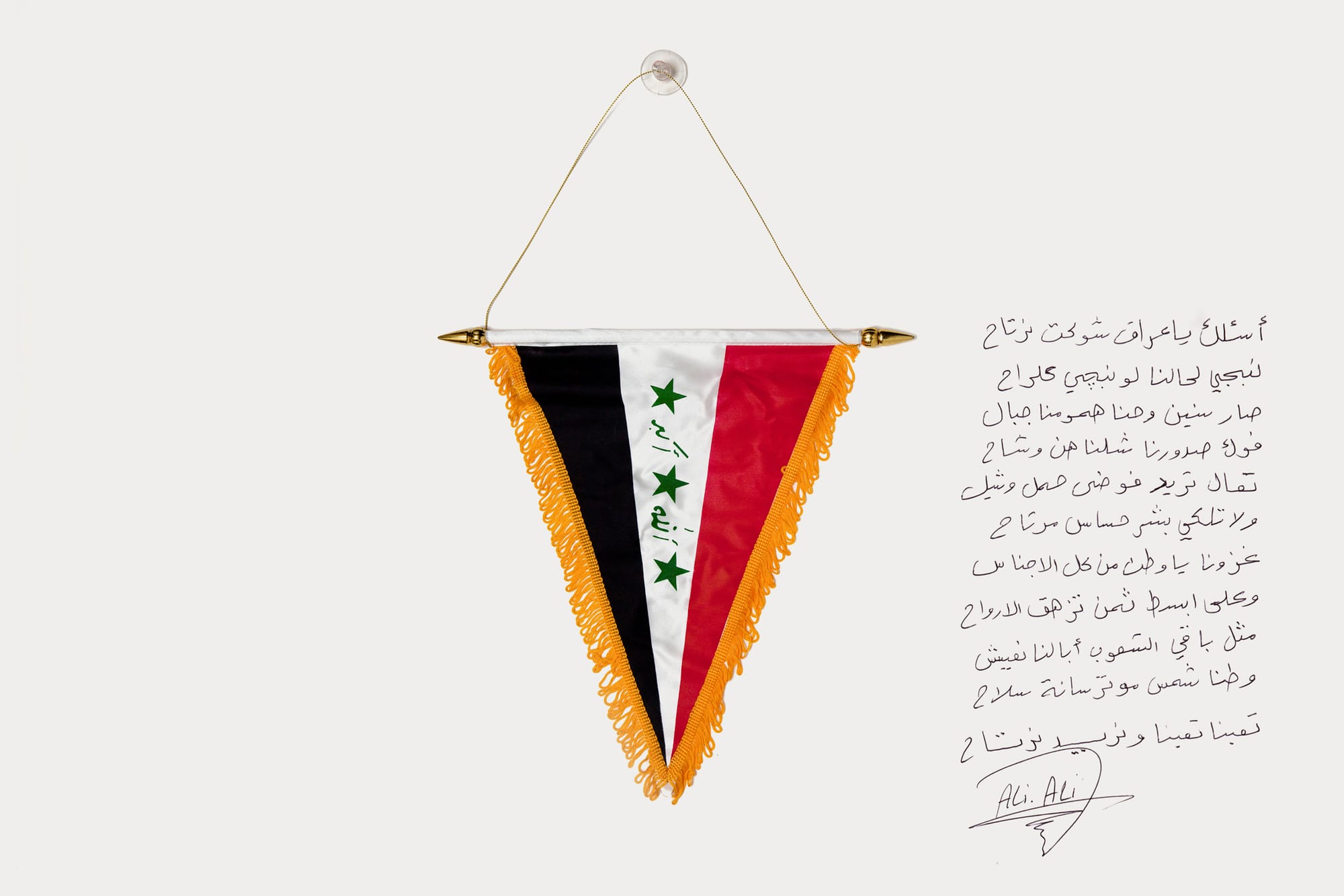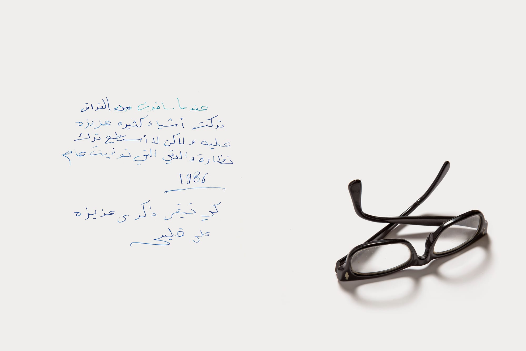 As Lommasson photographed the belongings and mementos his subjects brought to America, he’d give them a copy of the print to write their stories on the 19 by 13-inch image. This allowed his subjects to tell their stories in their own words, granting them a sense of agency. Many of these objects have clear associations with the subjects’ homelands: for example, a lute emblazoned with an image of the ancient Assyrian king Ashurbanipal or an Iraqi flag. Other objects are arresting precisely because of their familiarity — Barbie dolls and teddy bears — things that point to a shared human experience between people on different sides of the world. One especially poignant photograph simply shows Arabic handwriting against a white void; when translated, we learn that this refugee, Endrious Esho, in his haste to get his family out of the Isis-controlled province of Nenewah, Iraq, left everything behind.