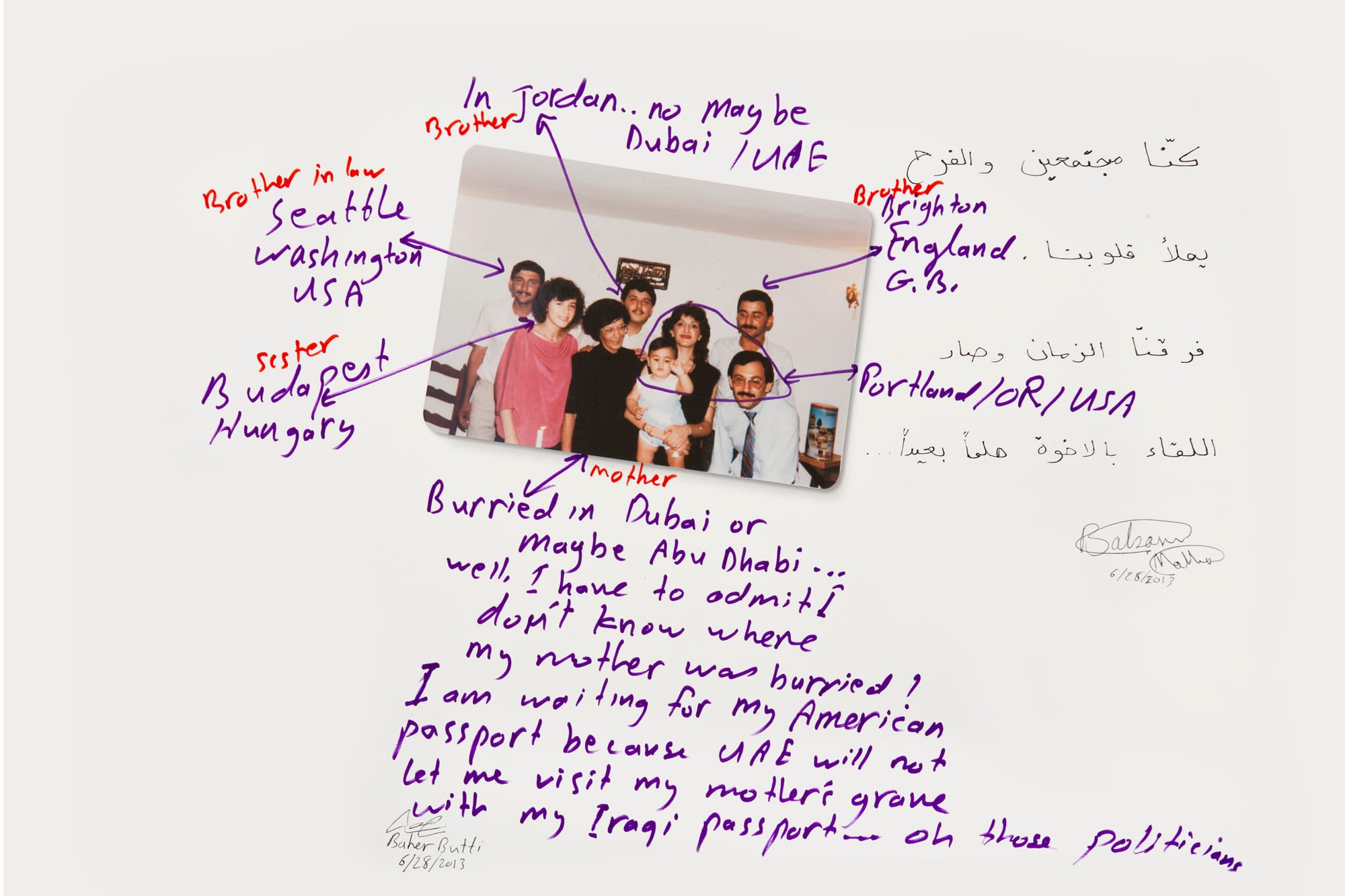 Lommasson conceived this project while he was completing Exit Wounds, a book project comprising photographs of and interviews with veterans who fought in Iraq and Afghanistan. The artist wanted to balance these interviews with Iraqi voices so he began interviewing Iraqis civilians who were caught in the crossfire. One, a female refugee living in Portland, disarmingly commented, “Thank you for removing Saddam Hussein, but did America have to destroy my entire country in the process?” This exchange sparked the idea for a project that would complement the stories in Exit Wounds.