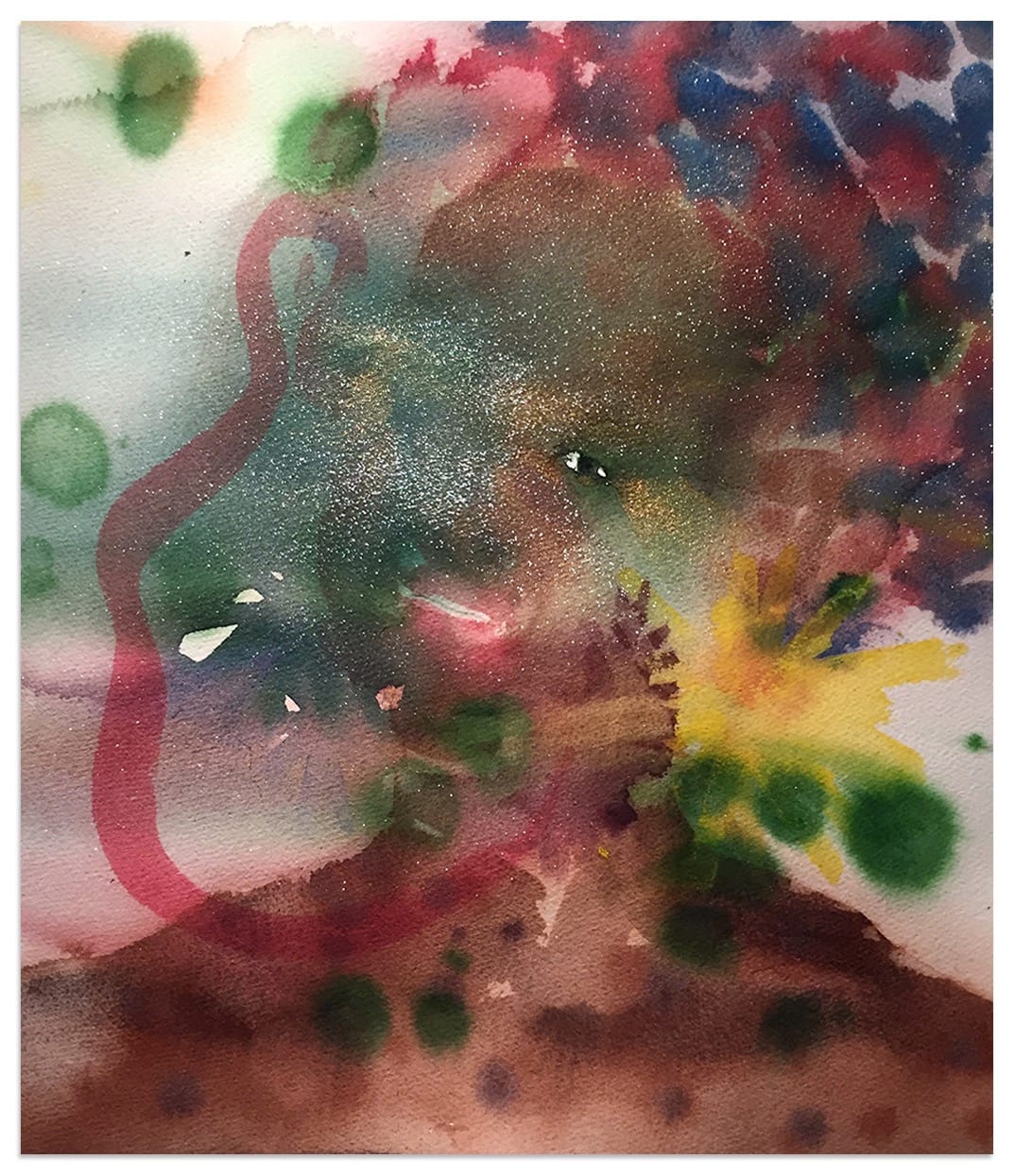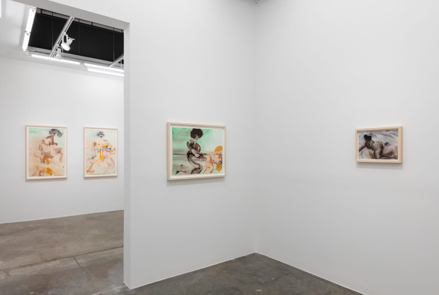 Nadine Faraj's technique, which is to work wet-in-wet with watercolors on paper, evokes the misty arcs of pleasure and the deep, deep depths of hunger that the sexual act taps.