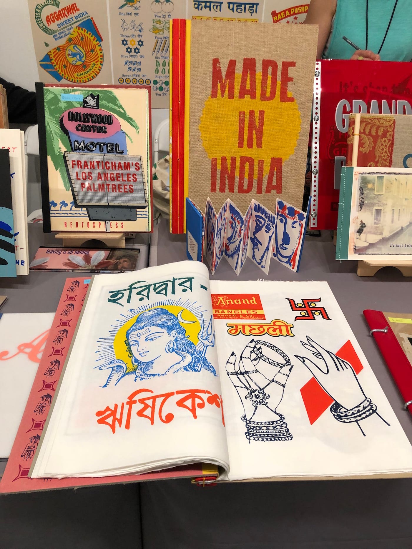 My two favorite items from this year’s LAABF are near opposites. Redfoxpress, whose founders are based in Ireland and South Korea, has an artist book on display that everyone should get a chance to handle. Made in India features bold, screen-printed graphics sourced from ephemera (packaging, maps, leaflets, etc.) collected in India during the ’70s and ’80s. The pages are made of hanji (traditional Korean handmade paper) and bound by a cover of jute and painted wood. Flipping through the pages reminded me of the tactile joy and luxury of books. Sadly, the book was also way above my budget for the fair.