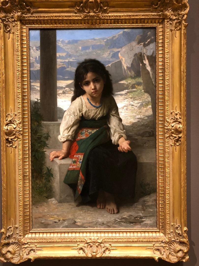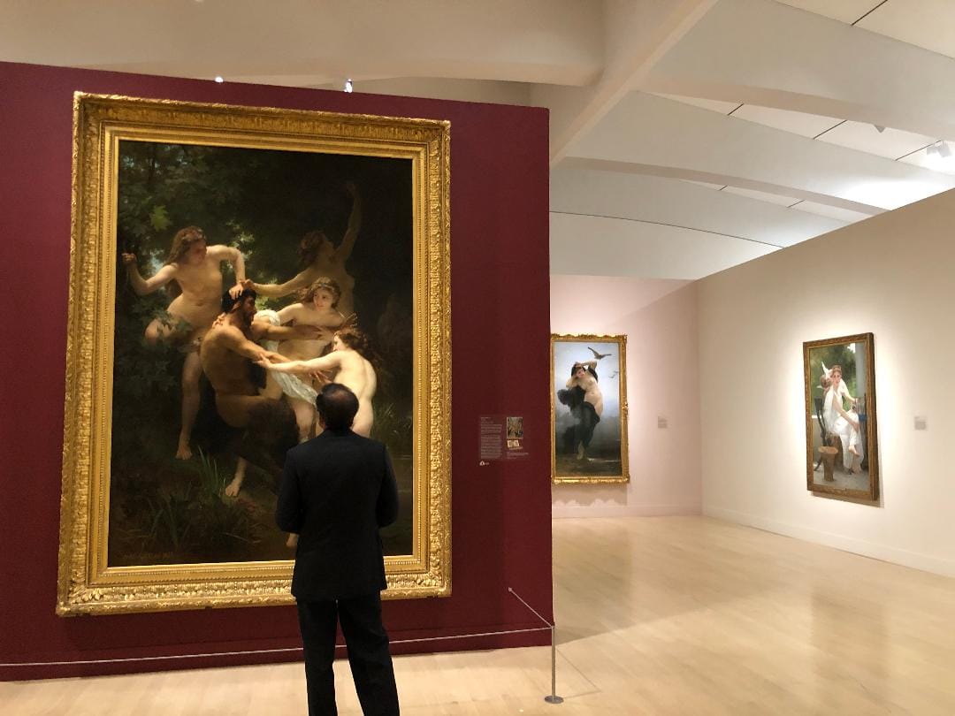 The exhibition’s catalog posits that America’s nouveau riche were mostly self-made men who wanted “to know they are getting their money’s worth by buying a Bouguereau.” The simple narratives of the paintings (beggar girl with hand out) as well as the skill in rendering equated with monetary value. While high prices were initially paid for Bouguereau’s work in America between 1860 and 1890, the market plunged in subsequent decades. There have only been two other major Bouguereau shows: one in 1974 at the New York Cultural Center and one in 1984, co-presented by Montreal Museum of Fine Arts and the Musée du Petit-Palais, Paris. Today, there are about 110 Bouguereau paintings in American museum collections. The exhibition intriguingly maps the sales histories and shifting locations of each painting on interactive iPads.