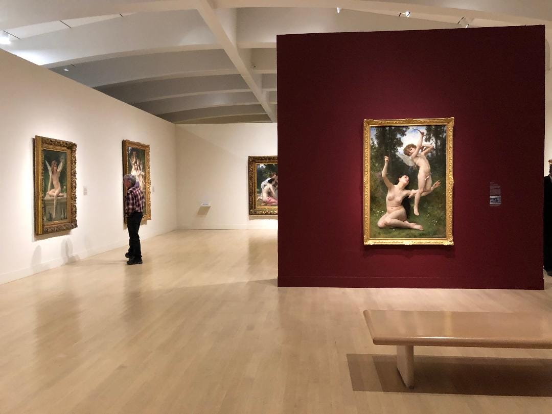 MILWAUKEE — Being surrounded by the fin-de-siècle paintings of French academic painter William-Adolphe Bouguereau (1825–1905) is like being in the live butterfly room of a natural history museum. Fluttering cherubs and young peasant girls with creamy skin tones compete for attention, pantomiming seduction. Every sightline, however, poses a mildly disturbing question: Are the children in these paintings simply “cute” or are they provocative? Just as one begins to wonder if Bouguereau spun child pornography into something benign like a greeting card, we are assured by text panels that he loved these young peasants and only wanted to make them dignified.