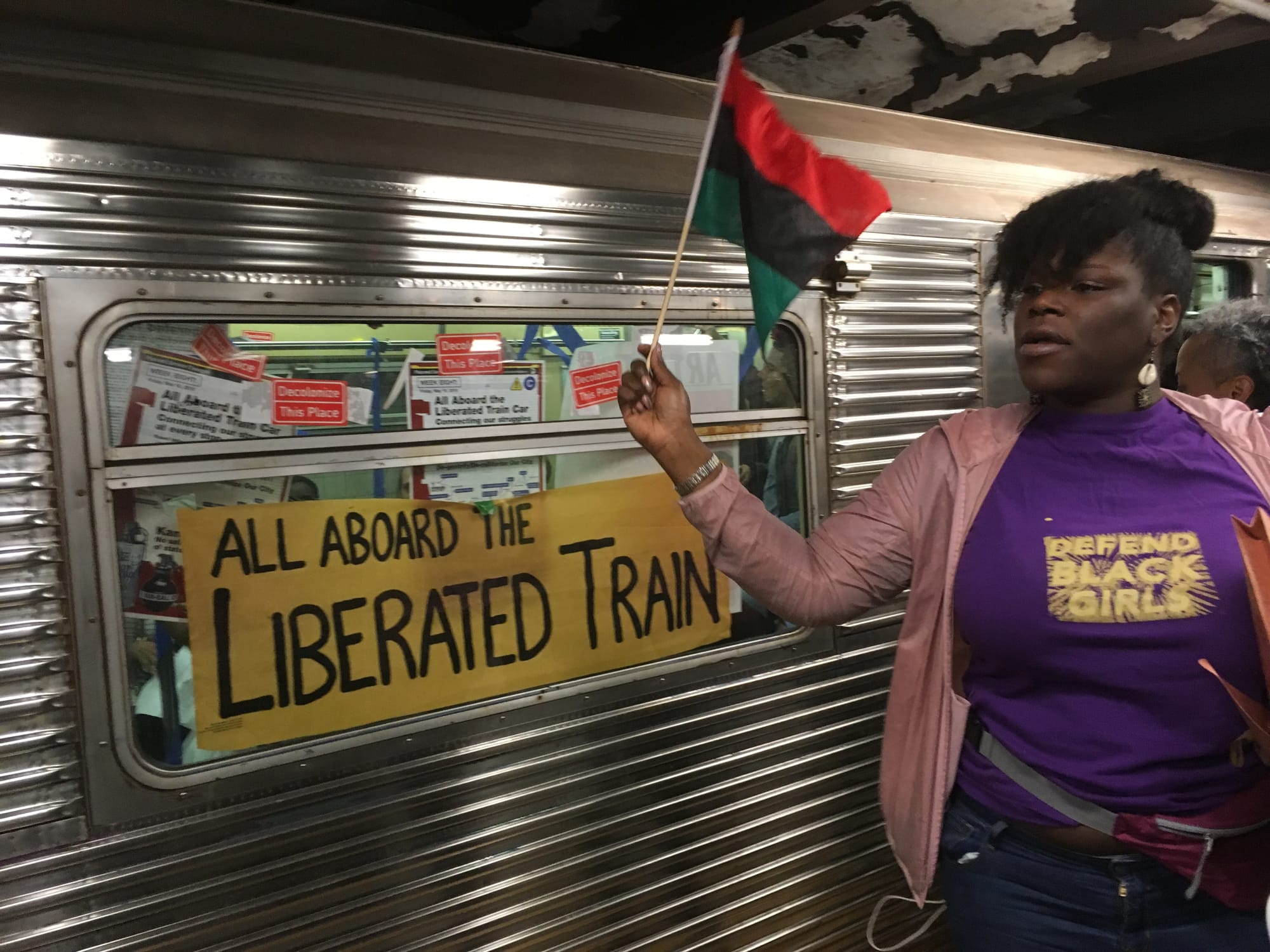 The protesters occupied the C subway line from East New York to Chelsea, and were confronted with large police forces at the final stop. One protester was arrested.