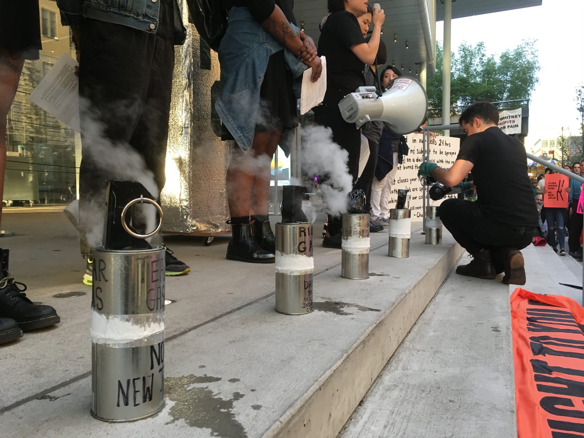 There, they restated their unequivocal demand to remove Kanders from the Whitney’s board, speaking out against his company’s supply of tear gas and riot control ammunition in Ferguson, Baltimore, Puerto Rico, Gaza, Kashmir, and at the US-Mexico border.