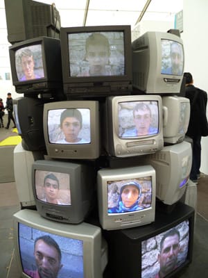 2. The very well-intentioned talks and their less-informed audiences. I attended Amar Kanwar’s talk on an upcoming project of his, which featured a series of nebulous stories about a somewhat spiritual creative journey of his, parts of which deal with the current conflict in Burma. During the Q & A, audience members then proceeded to ask what exactly he meant and if it was hard to articulate his creative thoughts in English. Embarrassed laughter ensued. (English may not be Kanwar’s very first language, but it’s one he’s probably been speaking most of his life.) I will admit that Kanwar’s was not the easiest train of thought to follow, but Frieze very conveniently put recordings of each talk on their site, the act of which I appreciate more than the talk itself.