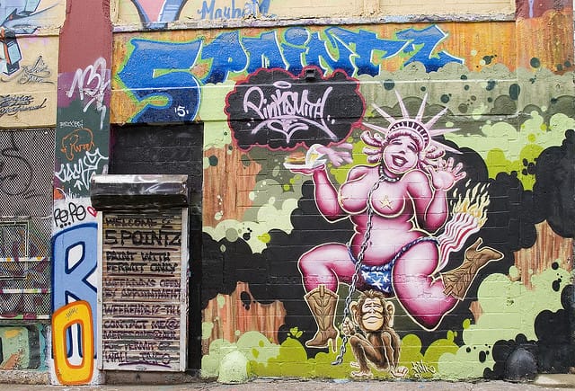 Featuring work by legendary figures such as Stay High 149, Blade and Lady Pink next to countless other local and international writers, 5 Pointz is an unofficial graffiti museum. A tourist destination as well as a mecca for graffiti enthusiasts, 5 Pointz traces the history of graffiti on its walls.