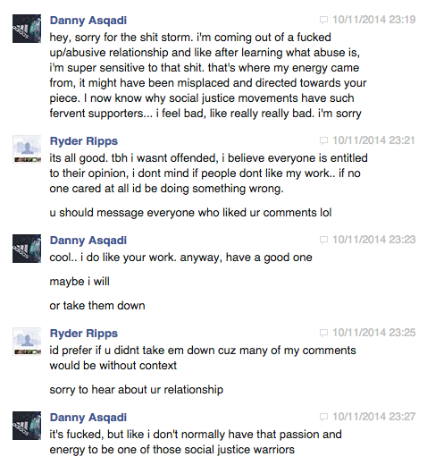 Which first began as a response to Danny Asqadi on my private Facebook as seen here. That same night of writing the comment, Danny has apologized to me, as seen here.