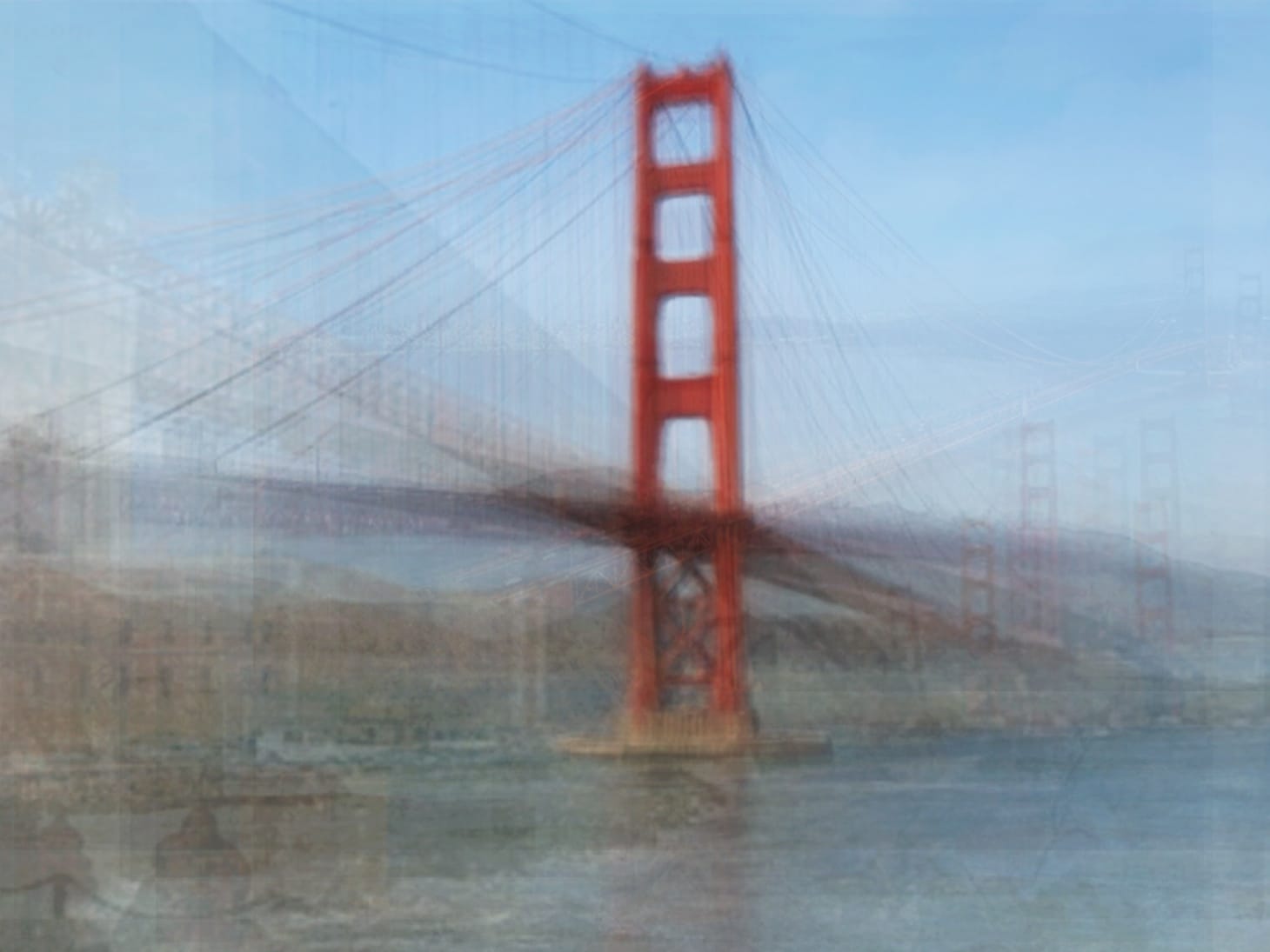 SAN FRANCISCO — In Corinne Vionnet’s series Photo Opportunities (2005–14), blurry images of iconic sites, including the Eiffel Tower and the Taj Majal, look ethereal and classically beautiful. For nine years, Vionnet collected online photos of tourist destinations and combined them. She got the idea on a visit to the Tower of Pisa, where she noticed people standing in the same place, taking the same photo. The ghostly images in Photo Opportunities show the obsessive nature of photography and the desire to show we were there.