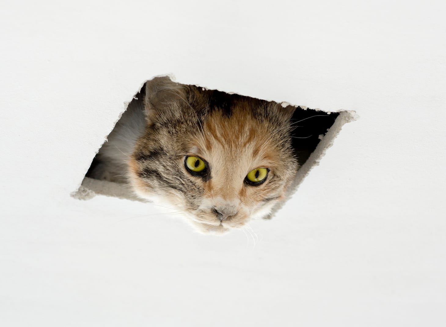 Cats are one of the most shared images online, with CNN estimating that in 2015 there were around 6.5 billion cat pictures floating around, and the final piece in the exhibit, Eva and Franco Mattes’s “Ceiling Cat,”(2016) is a three-dimensional sculpture of a cat’s head poking from a hole in the ceiling. This was inspired by a meme that went viral in 2006 with the tagline “Ceiling Cat is watching you.”