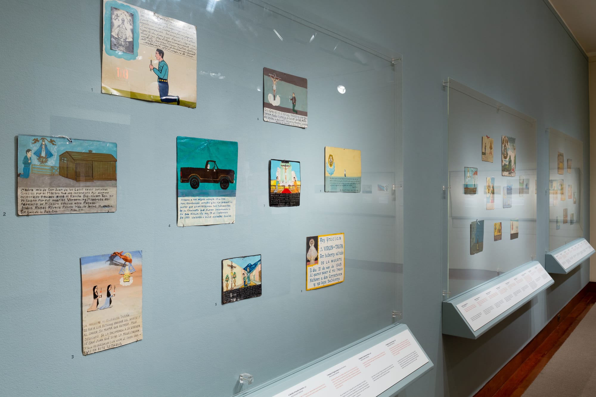Retablos became popular with collectors in the mid 20th-century. Those in Miracles on the Border were collected by Douglas S. Massey, a professor of sociology and public affairs at Princeton University, and Jorge Durand, a professor of anthropology at the University of Guadalajara, Mexico. Massey and Durand are co-directors of the Mexican Migration Project, sponsored by Princeton University and the University of Guadalajara. Created in 1982, the project collects data to track patterns in the characteristics and behavior of documented and undocumented Mexican migrants to the United States and records how they change over time. “These retablos are the more ethnographic side of our studies,” Durand noted in an exhibition-related presentation. “We wanted to tell the story from the migrant’s point of view and this was a good way.”