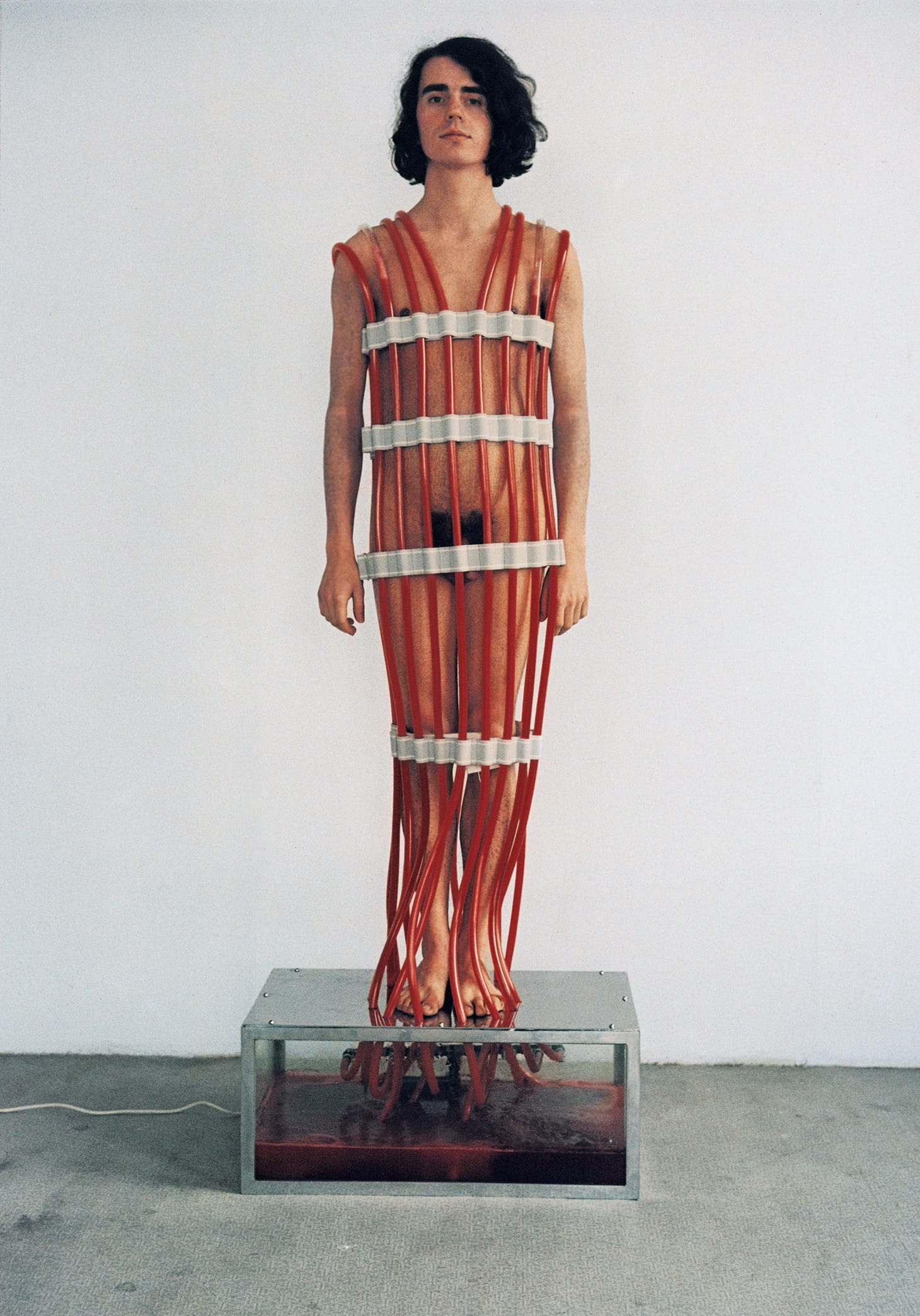 Another of her grand subjects appears to be unobservable force-field energies and their pressures of attraction and repulsion and circulation that pass through and around the human body. This is perhaps best exemplified with the photograph of the young man wearing her “Overflowing Blood Machine” (1970). This blood flow theme is made encroachingly poignant by the partially debilitating stroke Horn suffered in 2015.