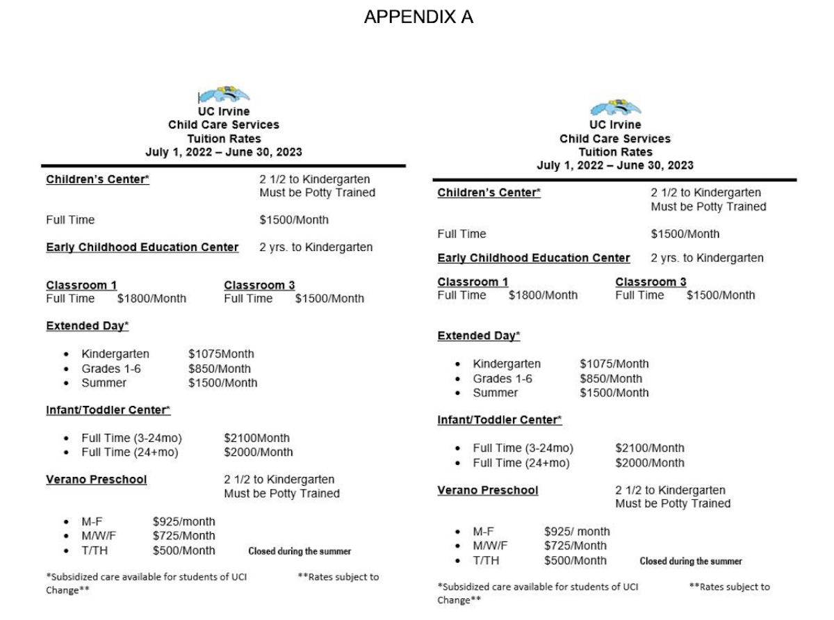 - Our current health insurance does not extend to our dependents and the childcare reimbursement ($367/month) is far behind on the costs of childcare services that UC offers (APPENDIX A), creating extra financial burden on students who are parents.