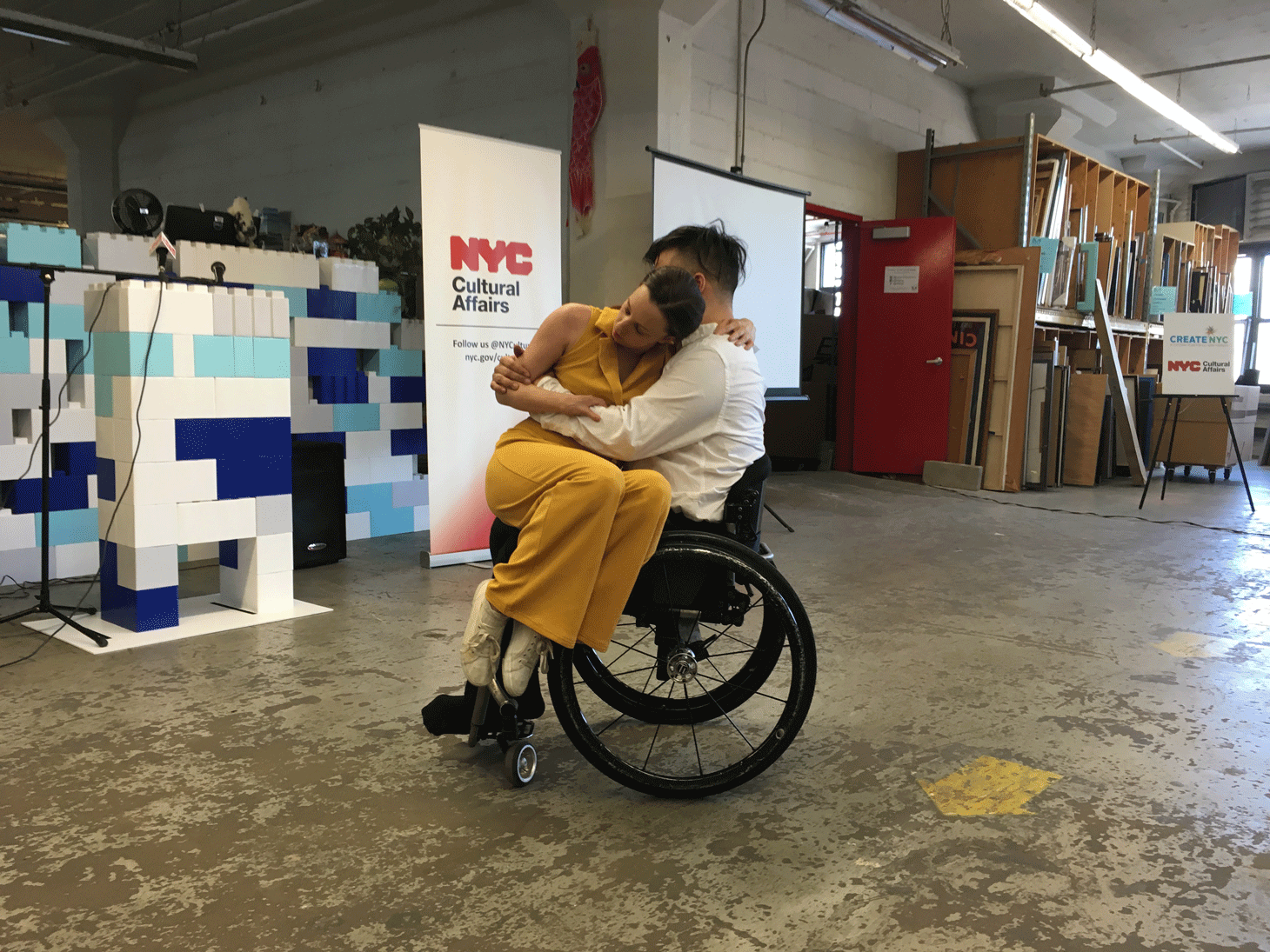 The press conference was held at the nonprofit Materials for the Arts in Long Island City, where CreateNYC was first announced two years ago. After a performance by the dance duo Louisa Mann and Peter Trojic, who were supported by the plan’s disability arts budgets, Finkelpearl took the stage to list the program’s accomplishments in the past two years. “We’ve increased funding for individual artists and unincorporated organization to $4 million from what was $1 million three years ago,” the commissioner said. In another highlight, the program added 444 certified arts teachers to public schools around the city.