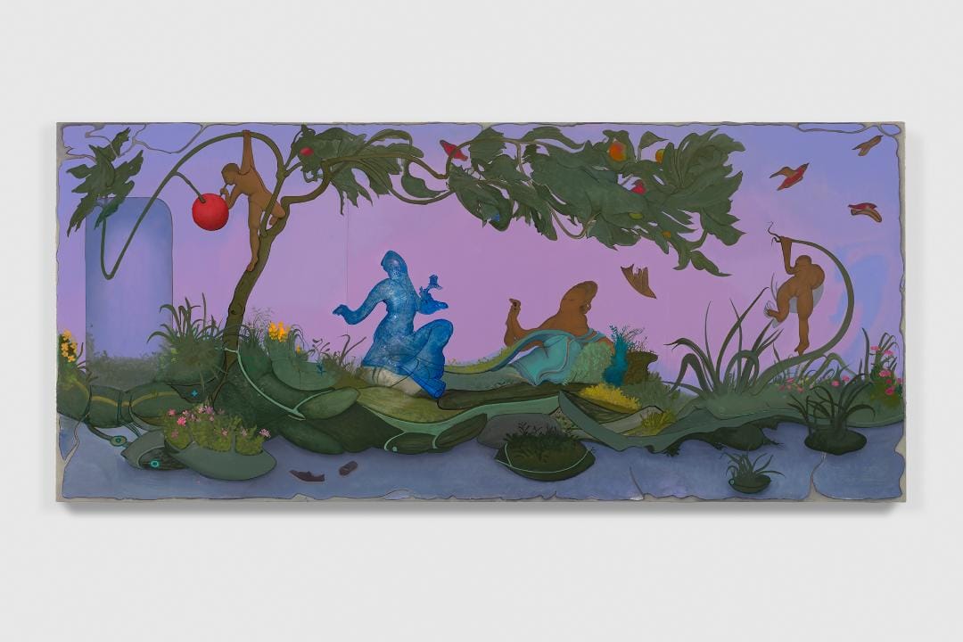 CHICAGO — “A map of the world that does not include Utopia,” quipped Oscar Wilde, “is not worth even glancing at.” Inka Essenhigh’s Uchronia at Kavi Gupta gives us not a map, but fragments and glimpses of a place and time better than our own. Unlike past visionaries who imagined utopia as a faraway place, Essenhigh conjures an incomplete image of a distant future whose contours, however, are clear: It is a world of ecological balance, a pastoral place where what was once work is now play.