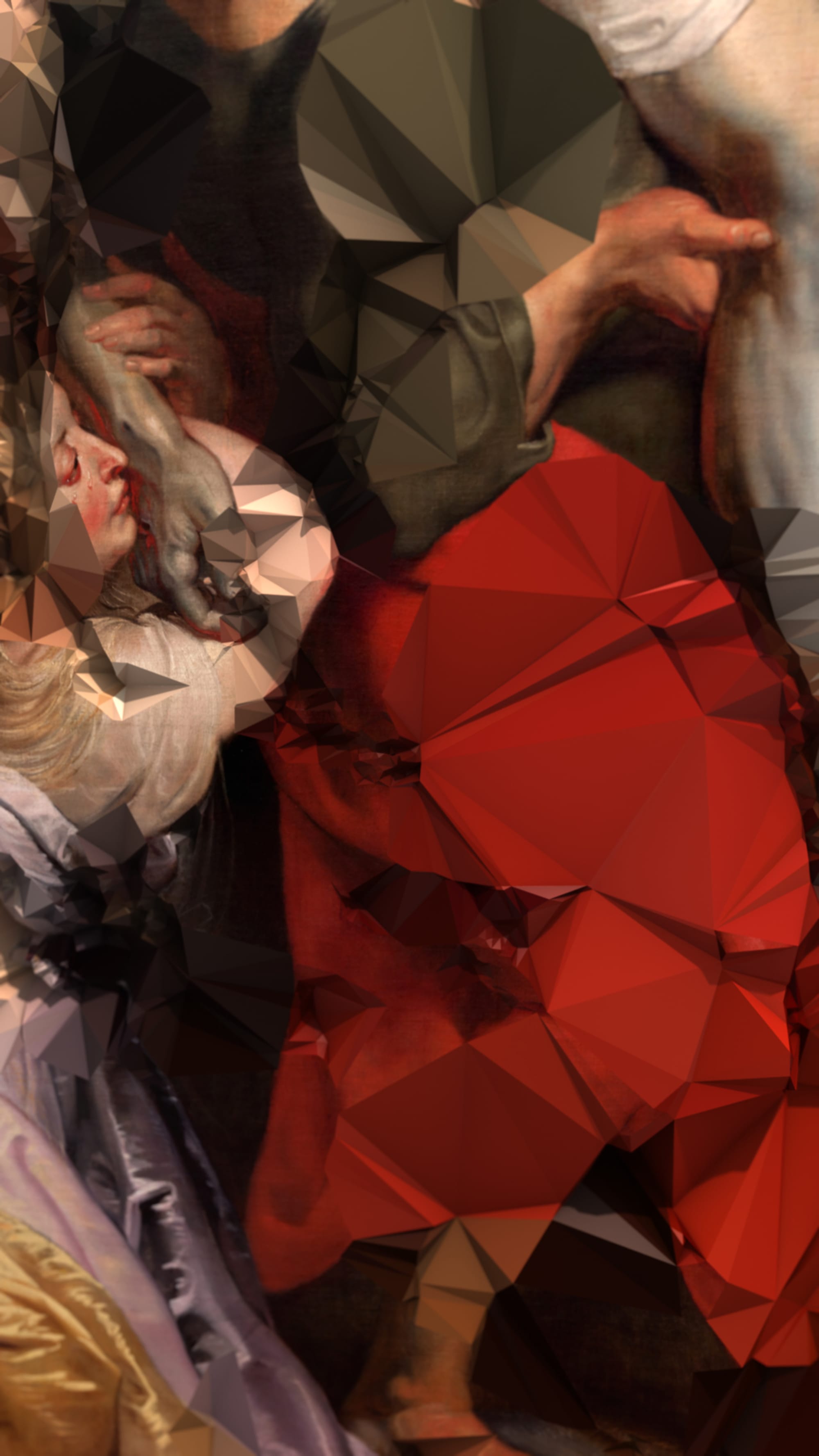 What Quayola really looks for is the alchemist’s secret, the golden rule or mean of proportions that can underlie eternal works. His HD video series about two paintings in the Museo del Prado‘s collection “Topologies — Velazquez, Las Meninas” (2010) and “Topologies – Tiepolo, Immacolata Concezione” (2010), structurally dissolve as you view them. In collaboration with an HDR photographer he works with huge images, 20,000 x 20,000 pixels, running a raw analysis to discover what is really within the paintings. Employing a triangulation algorithm that generates thousands of polygons, he takes these icons of perfection and turns them into a mesh continually deforming itself.