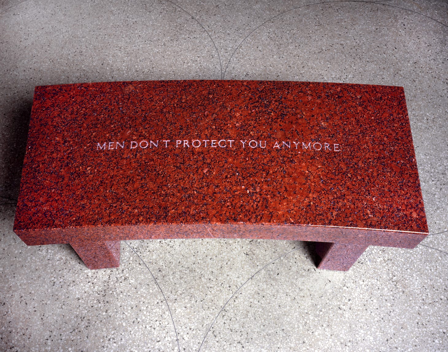 In the mid-’80s, words become stone and light in the “Laments,” “Living,” and “Survival” (1981–1989) series. Words had to escape paper and speech — they had to become something more permanent than bodies were in New York at that moment. And then they went beyond New York.