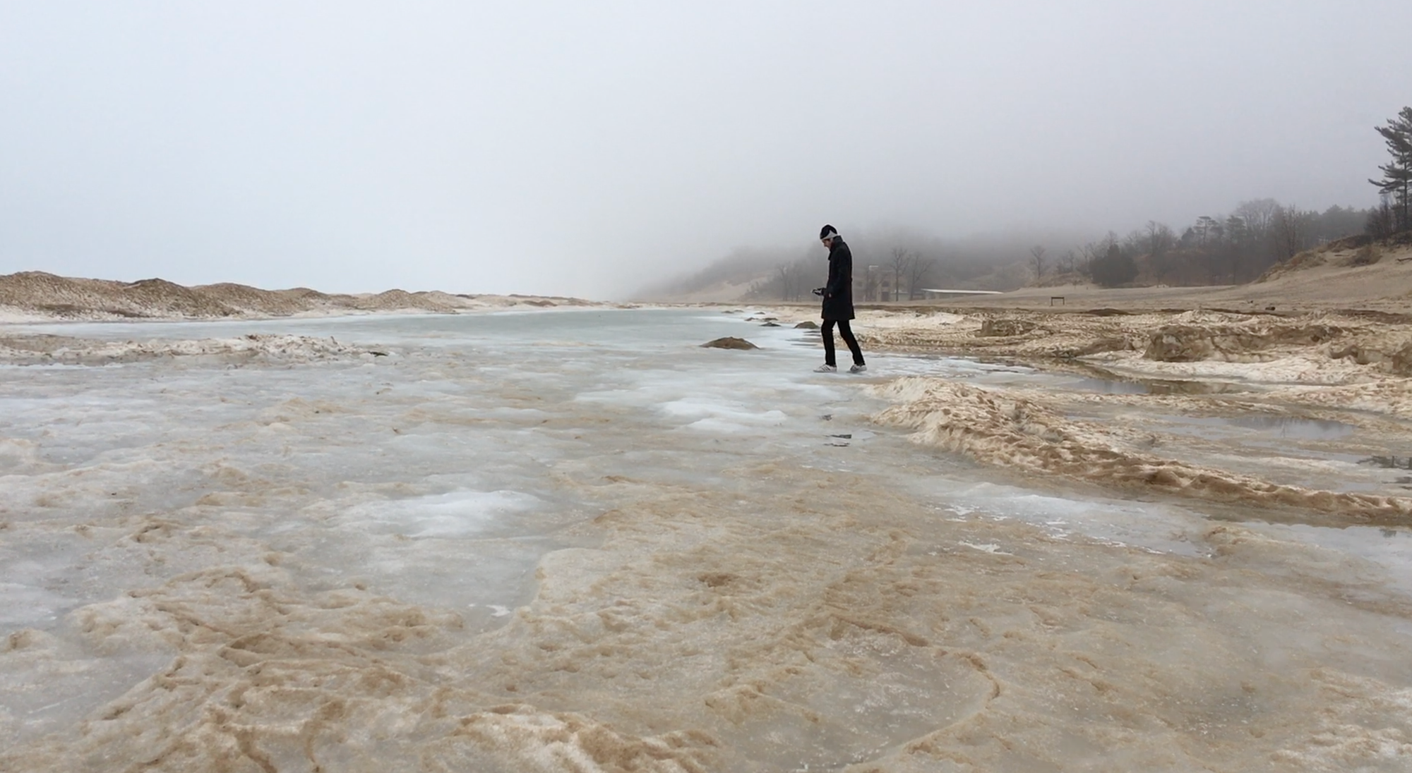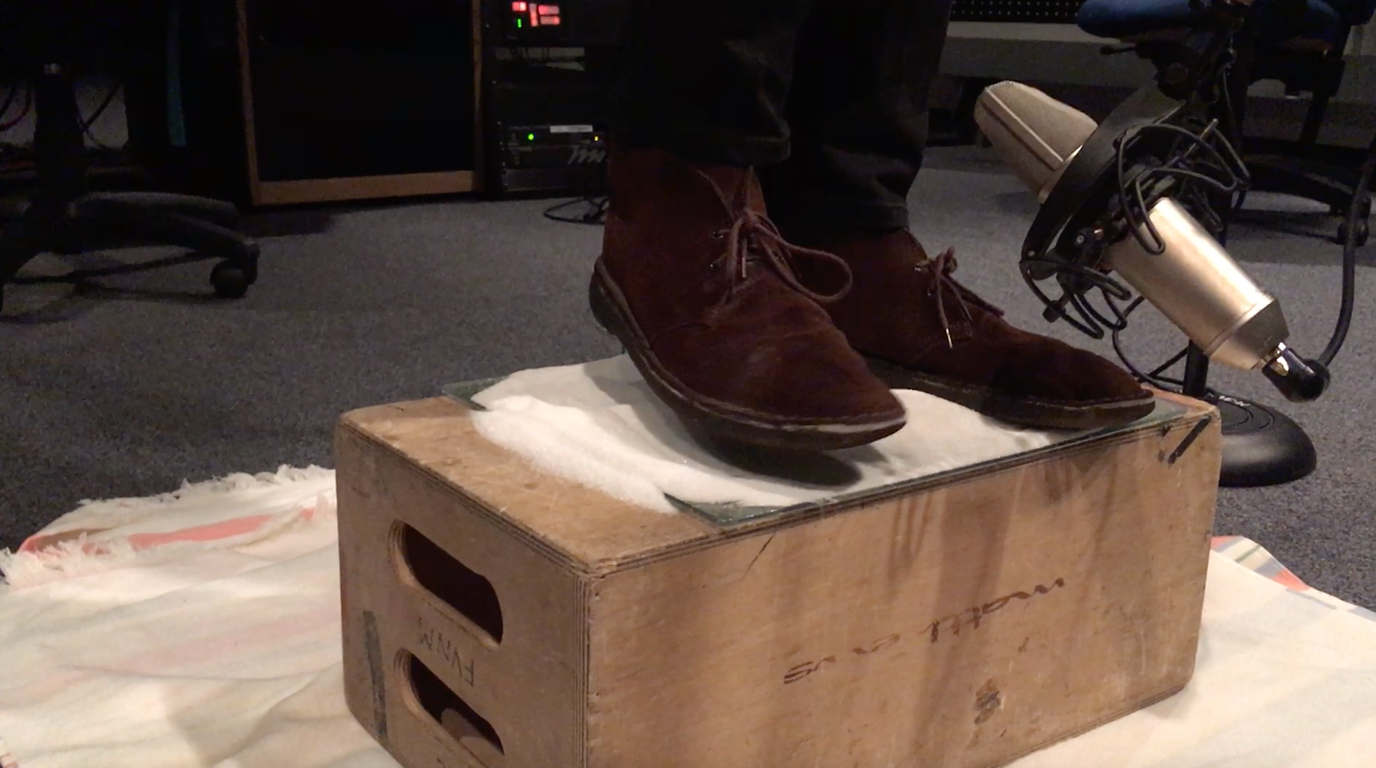 Rather than document the sounds of Antarctica through field recordings from Macdonald’s travels, Wood and Macdonald worked to recreate the sounds using foley techniques (as is often done in audio for film, a topic Wood taught while a graduate student). The machinery heard at an airstrip, for example, is sourced and edited from recordings made at a construction site in Chicago. In a studio, Wood and Macdonald stomped on granulated sugar to mimic the crunching of boots on snow. These recordings are then placed on an interactive digital map of the areas of Antarctica MacDonald has traveled to. The result blurs the boundaries between documentation and recollection. Wood believes the project “focuses on how sound is filtered through memory and emotion,” and that it reflects “the human-made quality of ‘natural’ environments in [an] era … when all places have been touched by human economic and social systems.”