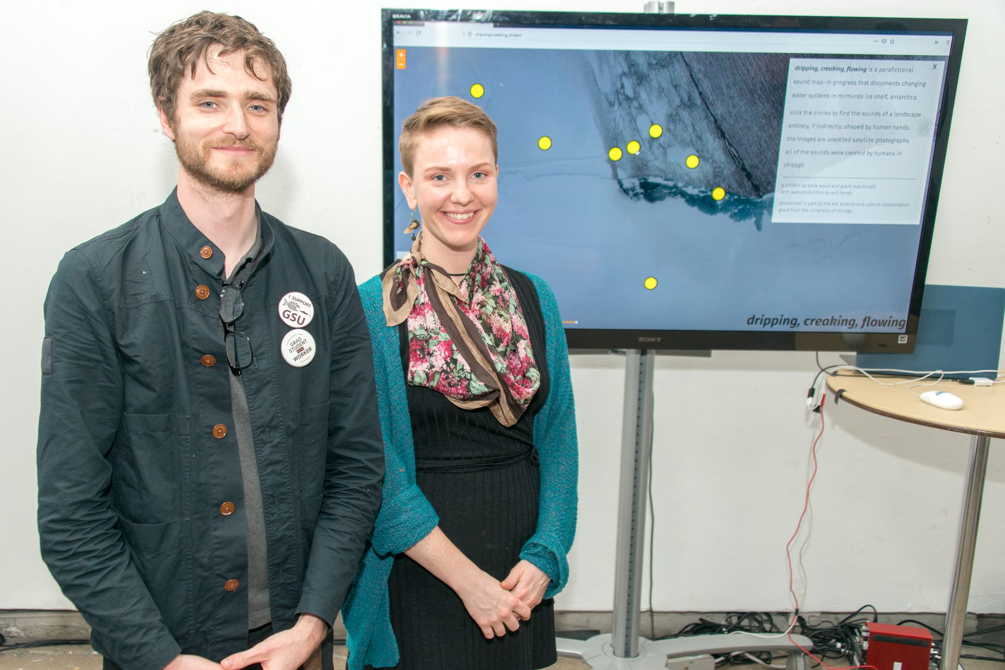 The project follows Macdonald’s research trips to Antarctica, and attempts to reconstruct his experiences at the bottom of the world via audio and photography. The two hope to make evident the continent’s transformation in ways that might not be easily communicated via scientific data and reporting. “We were interested in coming up with a project that would help us bridge across disciplines, with the shared concern of giving people a way to connect emotionally to the changing landscape in Antarctica, because it is so remote,” says Wood, currently an artist in residence at Experimental Sound Studio in Chicago. While pursuing an MFA at the School of the Art Institute of Chicago, they reached out to Macdonald, a glaciologist and PhD candidate in geophysical sciences at the University of Chicago. Through support from an Arts, Science + Culture Initiative Grant, the two developed dripping, creaking, flowing.