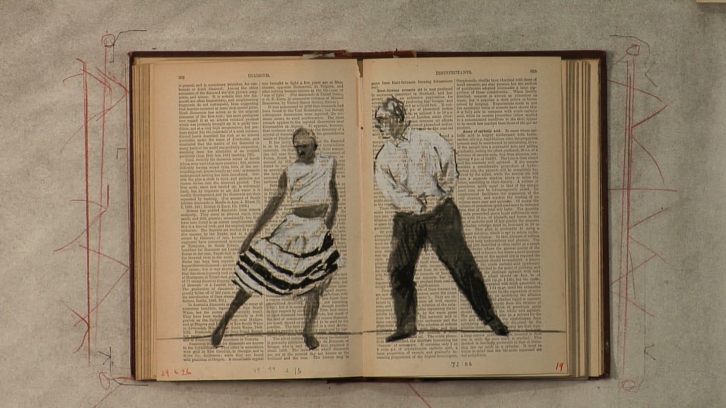 These images are hung opposite a small gallery in which William Kentridge’s video “Tango for Page Turning” (2012–2013) plays. Kentridge picks up the theme of intimate human relations and represents them in his understated, self-conscious way. In the video, the pages of a book turn while drawings made on facing pages conduct a poignant pas de deux. A woman dancing in her long skirt, which rises and falls, morphs into calligraphy. A man shaped like Kentridge runs to catch up with someone or something, becomes a chair, is replaced by a horse, and all the while a lilting, delicate classical music accompaniment fills that gallery and the rest of the show, thus making apparent the futility of the phrases that appear here and there in the video: “Undo; Unsay; Unremember; Unhappen.” Everything in this show relates to documenting and reconsidering that which can’t be forgotten.