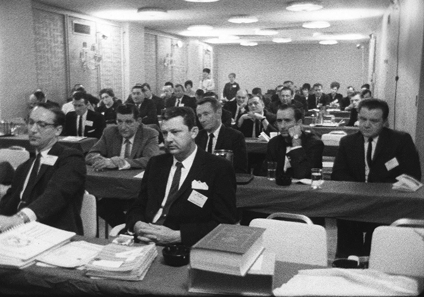 The Maysles and Zwerin do not explicitly condemn the salesmen for their or their industry’s callousness. Interactions between them at motels or on the road humanize them, demonstrating the job’s demands of physical labor, constant travel, and separation from their families. The wear and tear are most apparent with Brennan, who is demoralized by his downward trend. They are not innocent, but a more illuminating peek into the corrosive power that can arise within commodified Christianity comes via an all-company sales meeting which the foursome attend in Chicago. There, the “theological consultant” for the Bible they are currently selling speaks to the crowd. He says that their work is aligned with “[their] Father’s business,” making a farfetched comparison to Luke 2:49, wherein a young Jesus is separated from his parents and eventually found in a temple conversing with scholars.