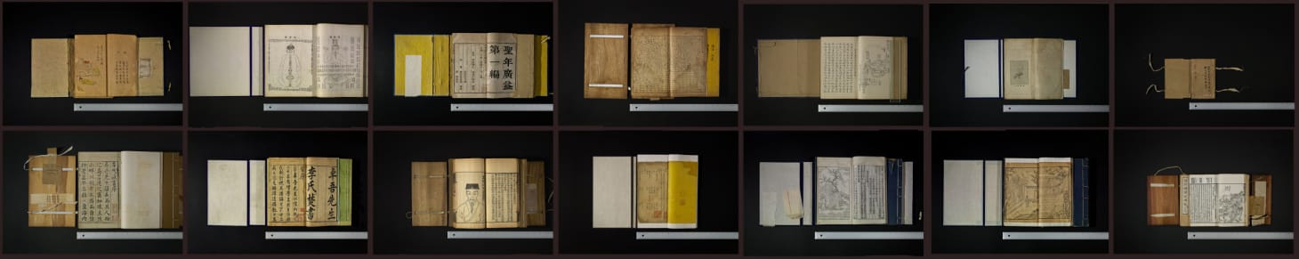 Objects of Evidence (2012–), from which the show derives its title, is the culmination of these efforts and is installed in its own dedicated gallery. For the past seven years, Xie has assiduously hunted down original copies of banned books, as well as later and alternate editions, assembling a collection that helps elucidate the potency of repression which has become intrinsic to Chinese literary culture. Selections of these books are on view in vitrines, and visitors can likewise thumb through a number of physical copies assembled for the exhibition. Viewers are also invited to click through “Forbidden Memories,” a searchable database of proscribed titles compiled by the artist, which detail such particulars as dates and reasons cited for a given book’s censorship, making for absorbing perusal.