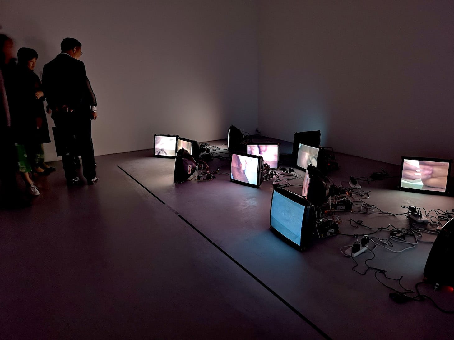 By contrast Observations, a concurrent thematic new media exhibition was apparently unchallenged. The topics of surveillance and individuality might have been expected to draw reaction. Cui Xiuwen’s “Underground 2” (2002), a covert recording of an unknown passenger on a subway train, suggesting that everyone is being spied on, and Zhang Peili’s “Uncertain Pleasures” (1996) — where, on a festoon of dismantled cathode screens dislocated patches of skin are scratched unremittingly — provokes reflection on the experience of being watched or of being coerced, concerns relevant both in and outside of China.