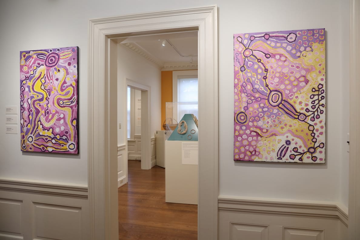 CHARLOTTESVILLE, Virginia — The Kluge-Ruhe Aboriginal Art Collection, part of the University of Virginia in Charlottesville, is the only museum in the United States devoted to showing the work of indigenous Australian artists. Located in a Colonial Revival house set on a hill, named Pantops (“all-seeing”) by early landowner Thomas Jefferson, the museum’s collection, numbering nearly 2,000 objects, focuses on work created since World War II, when the Australian desert artists rose to prominence on the world art stage.