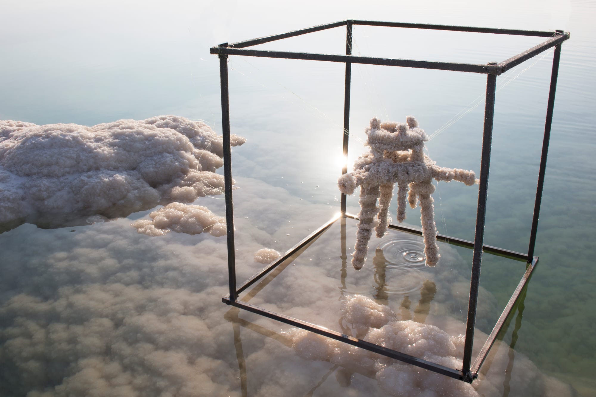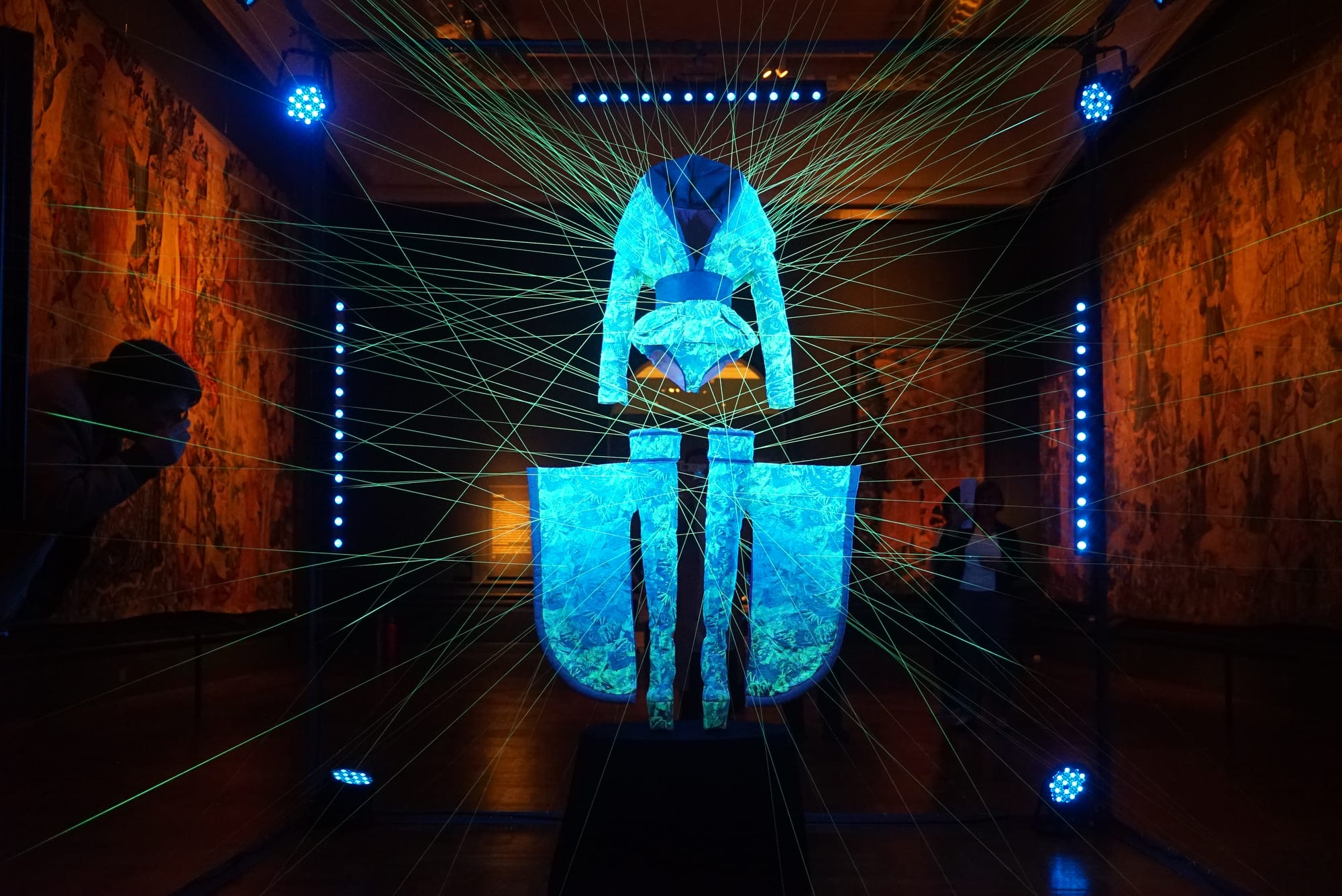 Nature presents profoundly mixed feelings about this design ethos. On the one hand, it showcases futuristic projects with curative potential: silk-protein screws for human surgery (Living Materials Silklab, “Catalogue of 10 Silk-Protein Derived Devices at the Interface between Technology and Life,” 2019); 3D-printed bone that is gentler on the human immune system than current implants (Adam E. Jakus and Ramille Shah, “3D-Painted Hyperelastic BoneⓇ,” 2015-19); bandages inspired by slug mucus (David Mooney, Ben Freedman, and Jianyu Li, “Sea Slug Bandages,” 2017-ongoing); origami-inspiredartificial organs (Chuck Hoberman, Richard Novak, Elizabeth Calamari, Sauveur Jeanty, and Donald Ingber “Origami Membrane for 3D Organ Engineering,” 2018-ongoing); textiles that can grow living cells (Amy Congdon, “Tissue Engineered Textiles,” 2015-ongoing). On the other hand, the gothic, sci-fi imagery of many works betrays a lack of faith in the cyborgian world such projects could engineer — for example, a spectral white gown made from glowing transgenic silk and displayed under black lights (AnotherFarm, “Fantasma,” 2019) and Jorge Gamboa’s widely reproduced image of a plastic bag partly submerged underwater so as to resemble an iceberg (Plasticeberg, 2017).