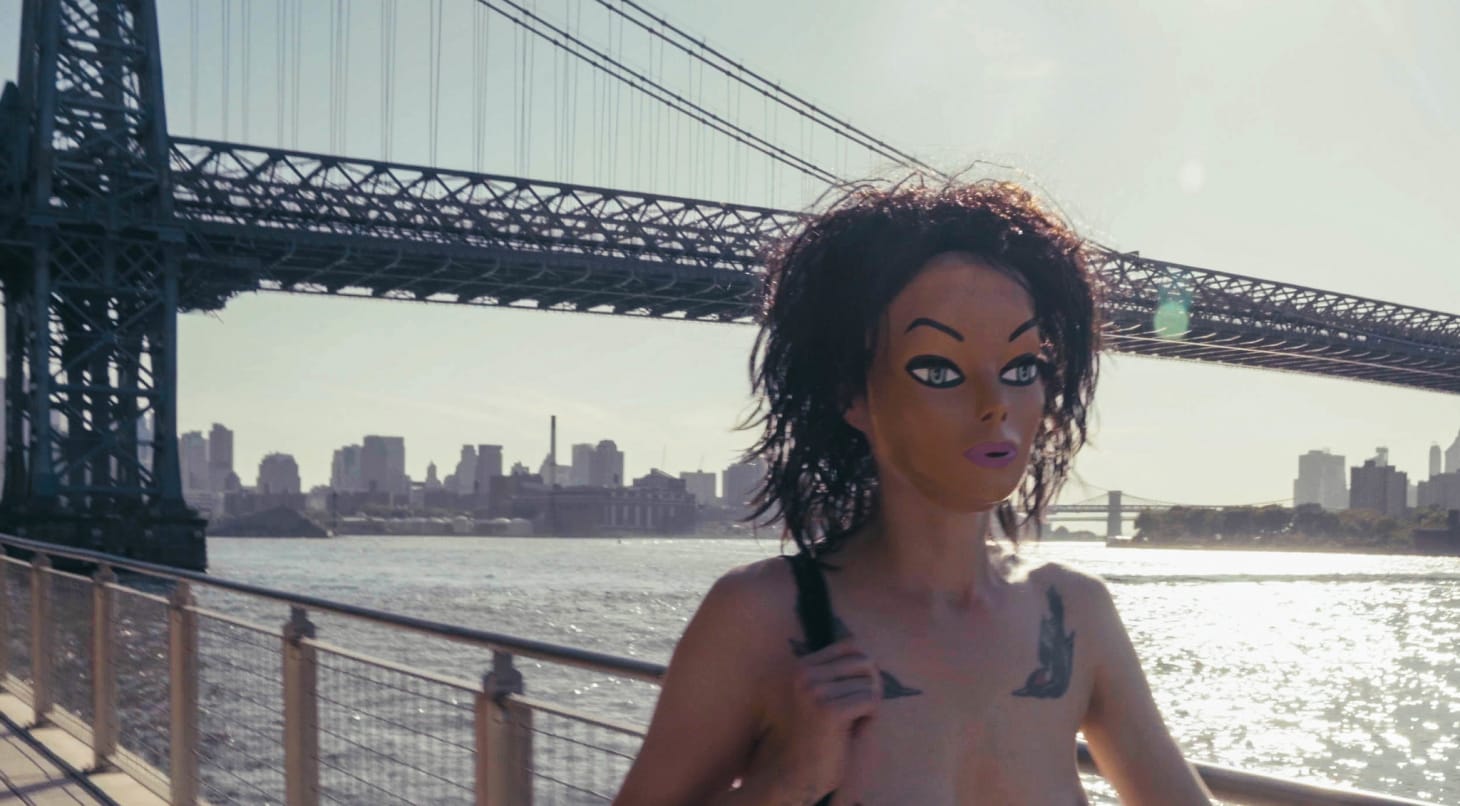 This willingness to take risks in art-making also fuels Narcissister Breast Work (2019), the latest short by the titular Brooklyn-based artist and Sundance alum. In the film, women bare their breasts in locations of heavy pedestrian traffic, to underscore how, while legally allowed in NYC since 1992, the act is still treated as an illicit one. Performers wear masks to render them anonymous, which also evokes other masked protests (ex: actions by the Guerilla Girls).. More poignantly, Narcissister makes clear that while the law has acknowledged women’s equal rights to bear their breasts, it was not followed by any public initiative that worked to de-sexualize women’s breasts.