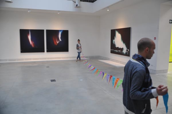 Bruno Jakob’s “Breath” installation of suspended paintings.