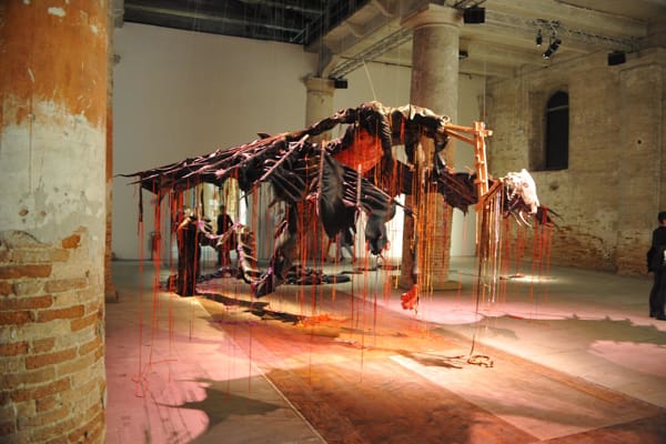 An Italy made of meat-like material by Gaetano Pesce in the Italian pavilion.
