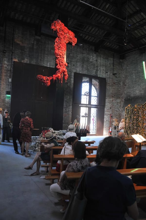The Biennale fulfills dual roles: first as art exhibition, second as spectacle, or as artist Christian Boltanski said to me: “a carnival.” A giant, messy carnival, where the side shows play as important a role as the main event. One particular kept coming up in conversation — that the lines were longer, and the hotels more crammed than ever before, but you get the sense that this same conversation plays out every year. Even so, the lines to see the pavilions were long. Very long. The longest were for the British and American Pavilions, where the number of visitors were limited, or where performances were scheduled at certain times. Almost everyone I met complained of not being able to get into some of the shows they wanted to see.