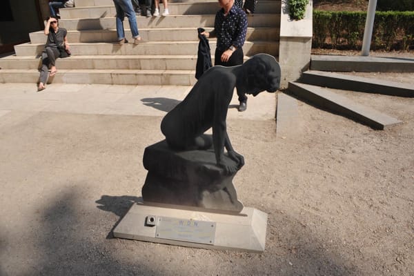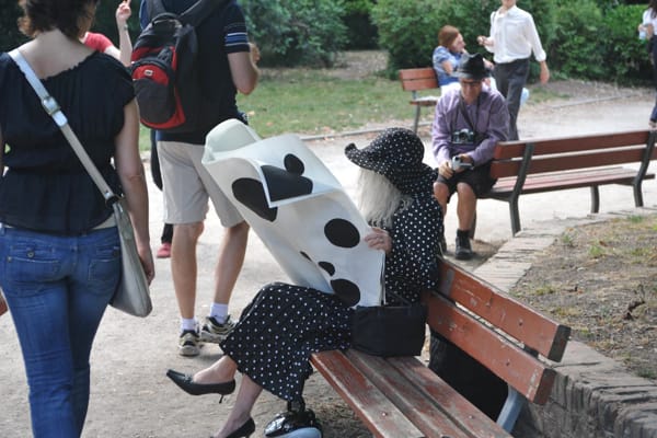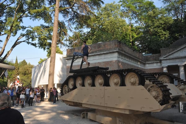 A performer as part of Danish Pavilion, in front of the Giardini.