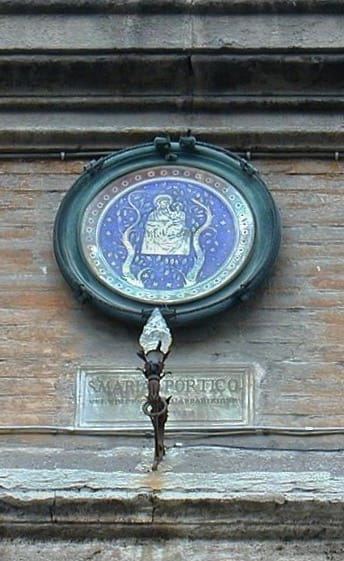 In Rome, the most renowned protectress against the plague was the Madonna del Portico, a tiny precious icon of the Virgin and Child. A mere 25 centimeters tall, it is made of silver and champlevé enamel, and dates from the late 1200s. It was venerated in the church of S. Maria in Portico, in a low-lying area of the city. Nearby was the bridge to the Tiber Island, whose buildings had frequently been used as a lazzaretto or plague hospital. The church, run down and poor, was already the center of a neighborhood prone to illness, but in May 1656 the bubonic plague arrived in Rome from Naples. Pope Alexander VII activated a special health commission headed by a priest, Girolamo Gastaldi, who was put in charge of the lazzaretti in the Papal States.