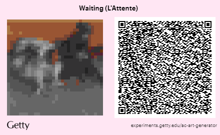 The Getty’s Animal Crossing Art Generator lets you pick any piece in the collection and then turn it into a usable pattern, complete with a QR code. You can scan the code using the Nintendo Switch app, and then upload patterns from the app to your game. The process is super quick and intuitive; the biggest obstacle is your own knowledge of what the Getty does and doesn’t have in its collection. (The web page helpfully provides a list of favorites from curators, featuring some of the more popular and/or AC-friendly works.) You can also select items from other institutions through the generator, as long as they’re part of the International Image Interoperability Framework.