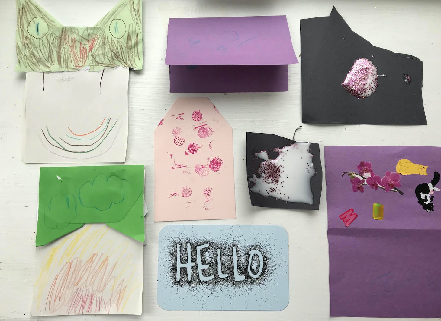 Philadelphia-based artist Mia Rosenthal was supposed to have more time for art-making in 2020. Her eldest is in fourth grade and her youngest had finally started preschool — freeing up part of her days for making work. With both back at home, she is balancing their schoolwork with at-home activities, including card-making and sidewalk painting. “We also bake a lot and go for walks,” she explained in an email. “There is something special about being out together on a random Tuesday morning, experiencing nature and early spring, when under normal circumstances we’d each be doing our own thing.” On the weekends, Rosenthal tries to get to her studio for a few hours, where she is working on a series of ink drawings that incorporate objects picked up on walks around Philly — the project taking on new meaning in a time of social distancing.