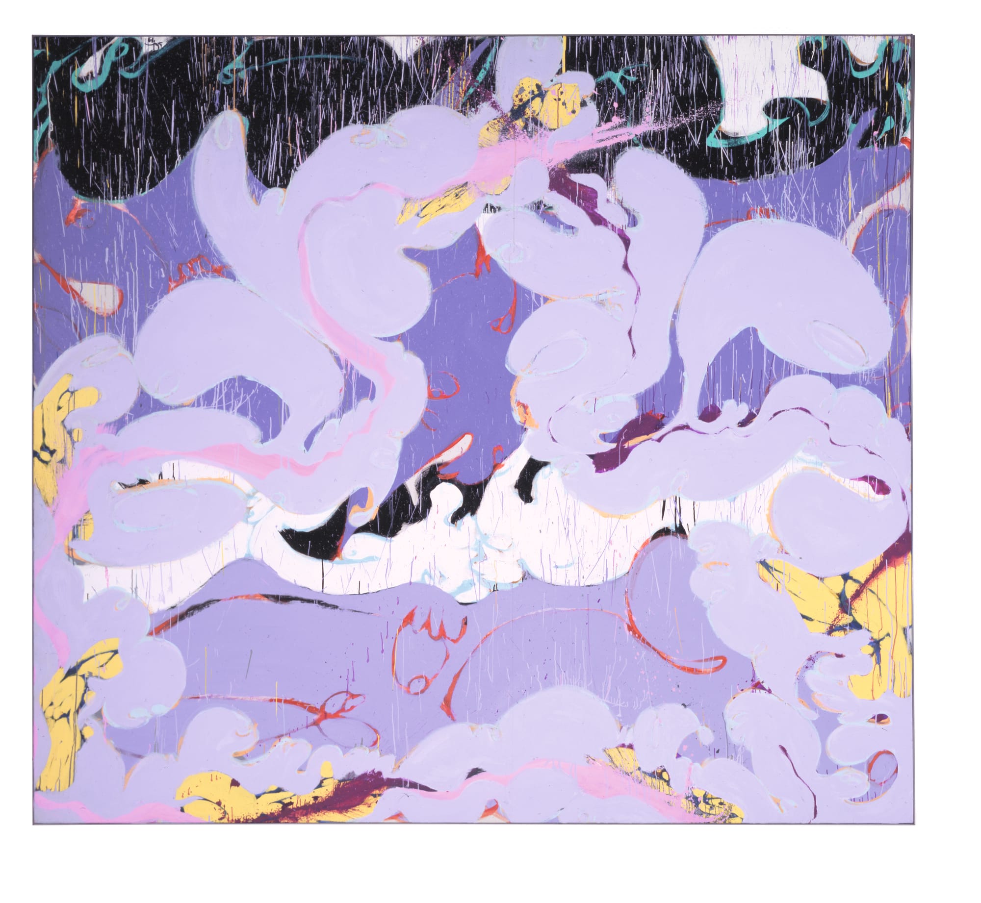 Bluhm was able to reconstitute gestural abstraction into lithe, color-saturated, erotic shapes that evoke a wide range of associations, from Peter Paul Rubens’s fleshy nudes to Giovanni Battista’s sun-drenched clouds. For this, he has never received due credit, partly because, contrary to many in his generation, Bluhm neither took the hand out of painting nor rejected the past: he believed all of the past was available for him to respond to, and spent many hours in the Metropolitan Museum looking at art whenever he came to New York from East Wallingford, Vermont (where he lived from 1987 to 1999).