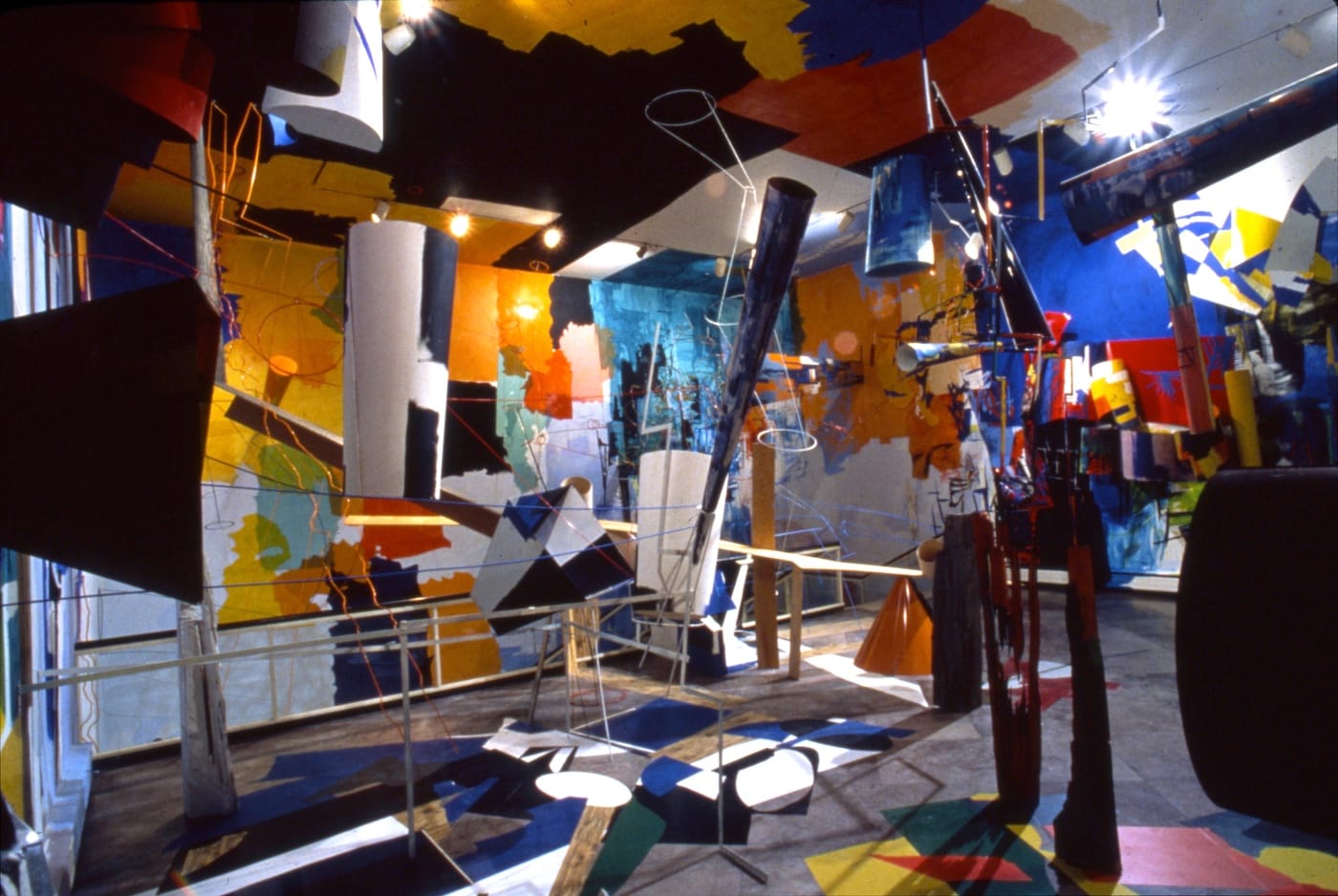 But the installations were not a big idea I had. I would make big things on a rooftop. When I brought them into a gallery, I found they lost a lot of energy from being in an airless space. I brought things in to make them more alive. My installations were about moving space, color, and formal issues. There was also an overriding narrative which guided them — whether it was perceived or not.
