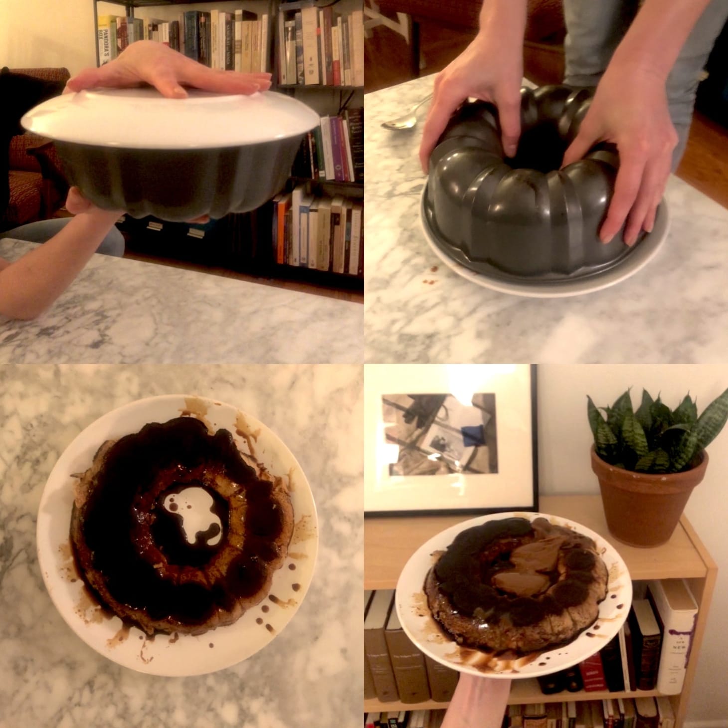 To serve: place a dish on top of the baking mold. Holding both the top and bottom firmly (see pic above), turn upside down with a quick and determined movement. If it does not unmold on its own, repeat or carefully separate sides with the help of a knife. The caramel will fall on top of the flan. Add the dulce de leche on the center, around, on top, or wherever you want!”
