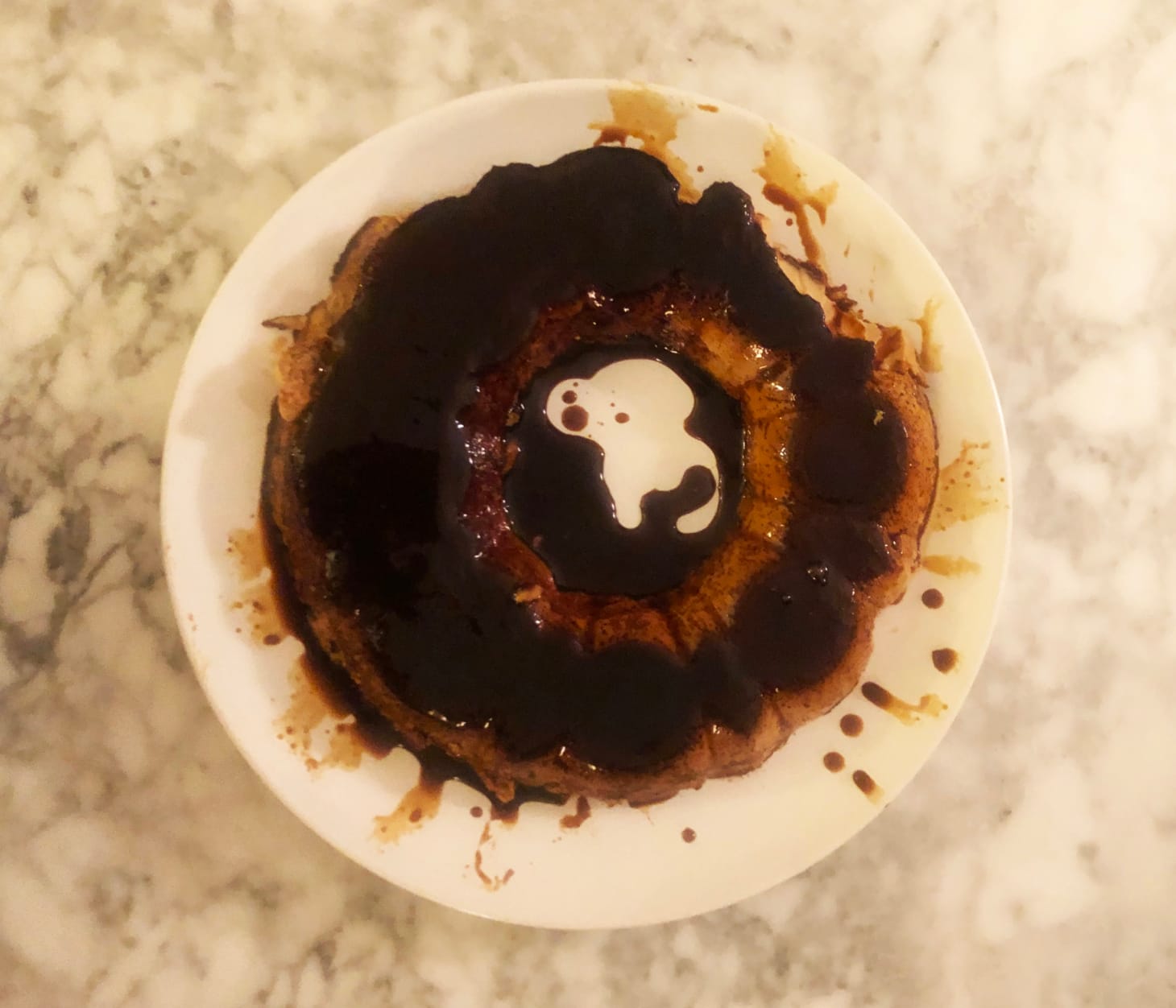 In a bowl or blender, mix the 12 eggs, quarter gallon of milk, and 1/2 spoon of vanilla extract until the mix is a little bubbly. Place the caramelized mold into a larger pan filled with water to create a water bath. Add the mix to the mold and cook at 450 degrees or so for half an hour or 40 minutes, or until a fork comes out clean. Don’t overcook it, because it will dry (it’ll still be tasty, but it will be hard to unmold!)